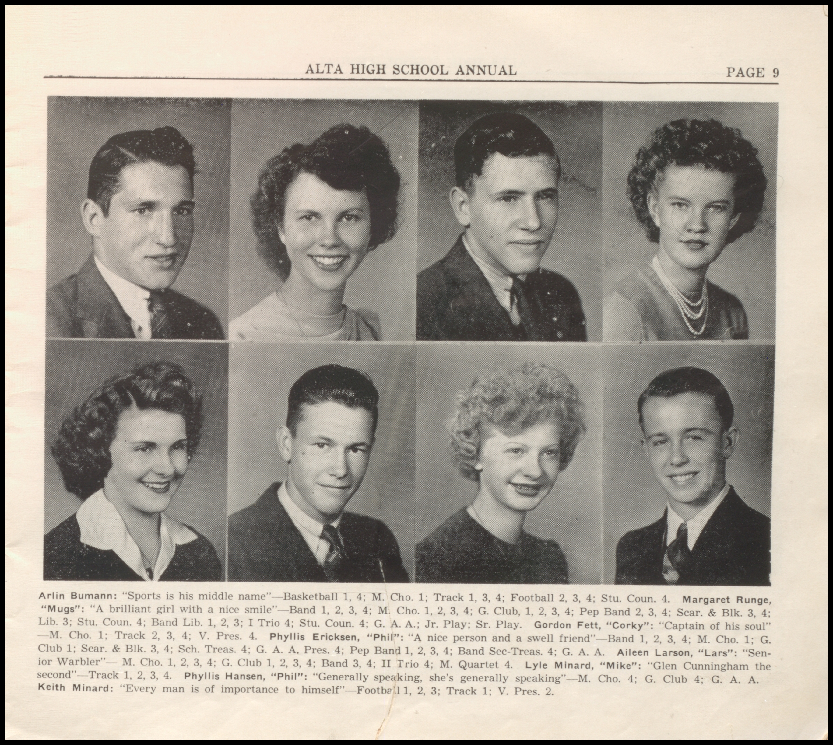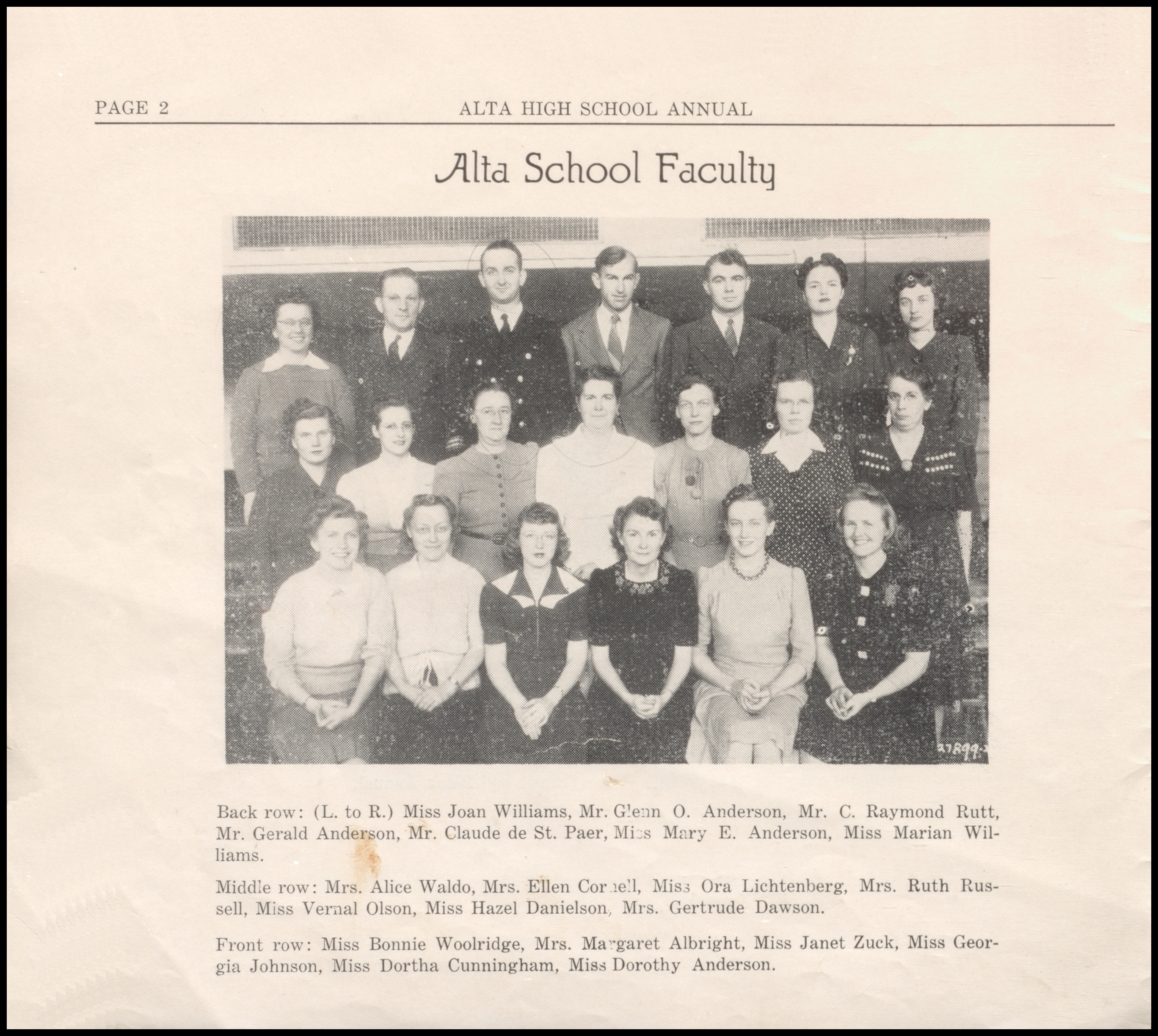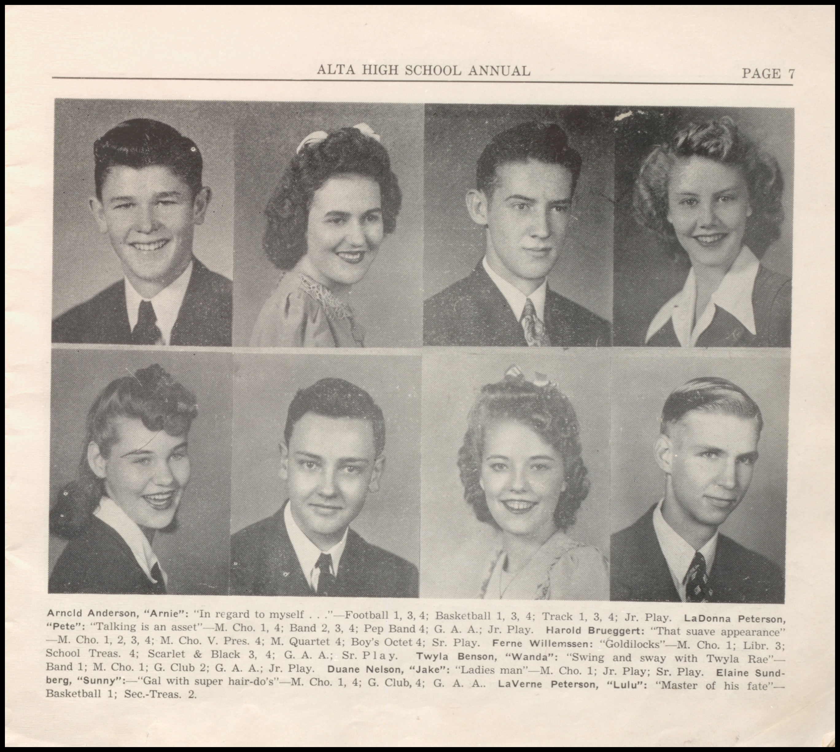 Below are digitized records, available for perusal. Please note that 1946 is not available in digital form, but is available at the Alta Community Library. This section is a work in progress. If you have any questions about yearbooks, feel free to contact us!
