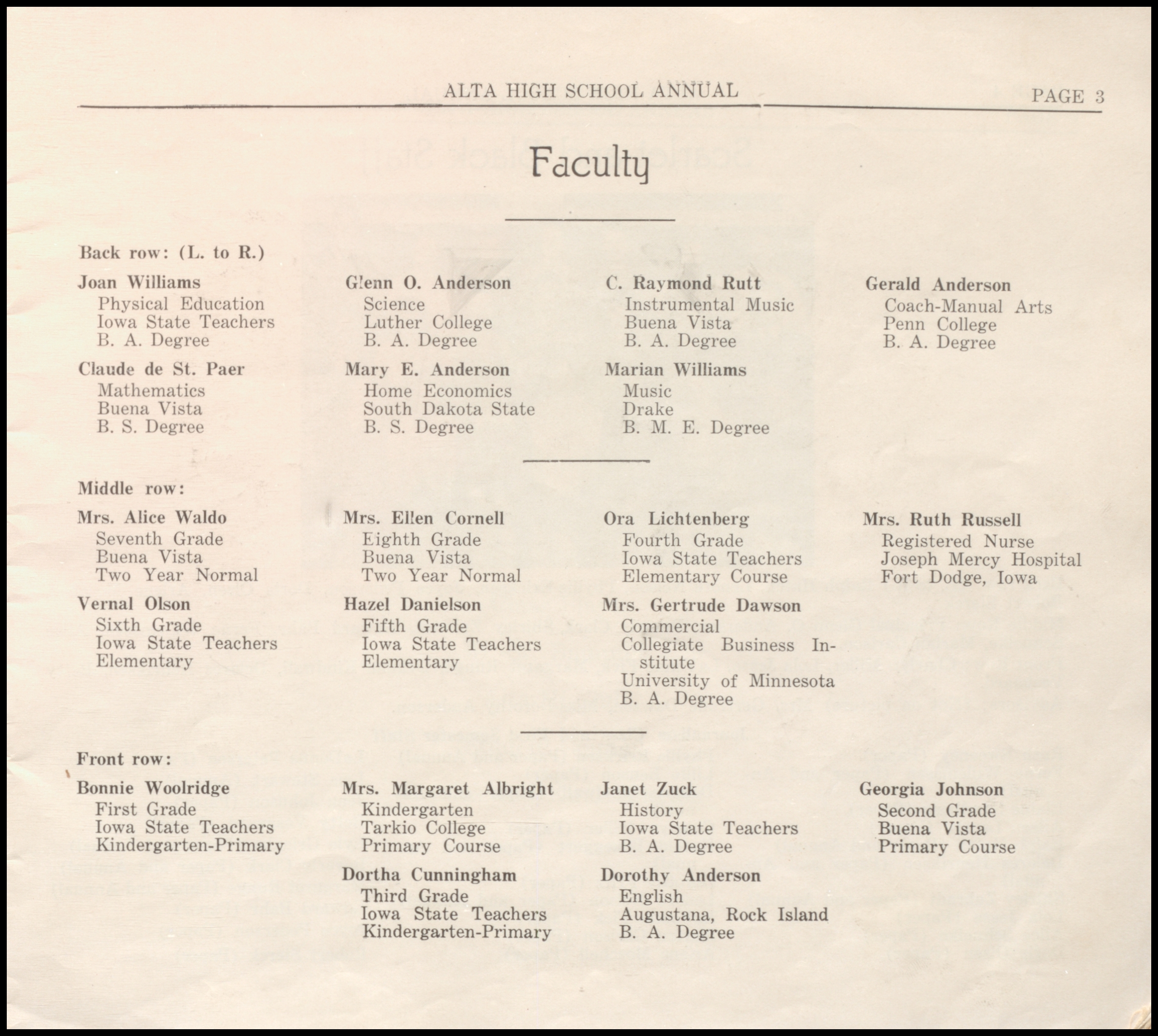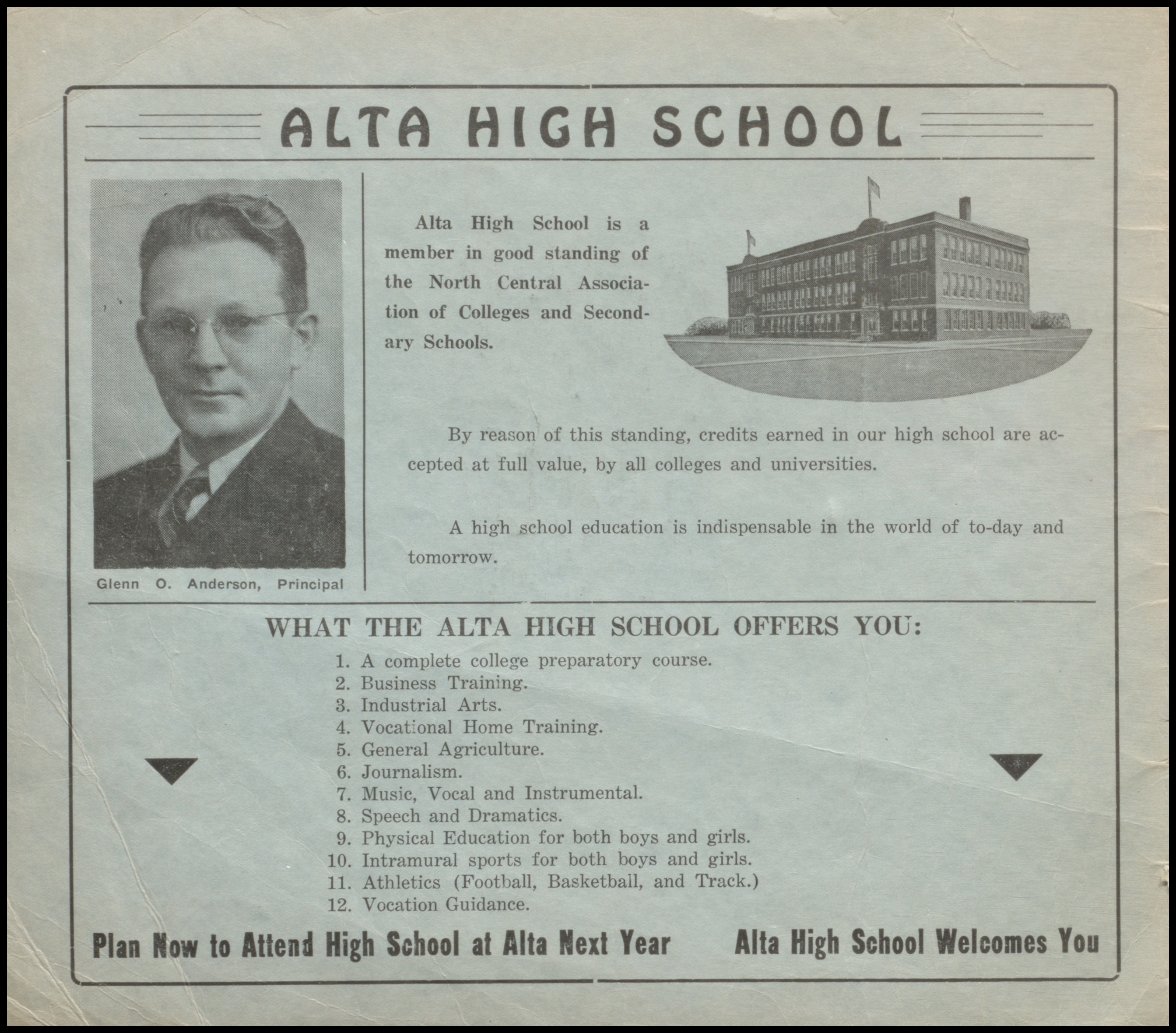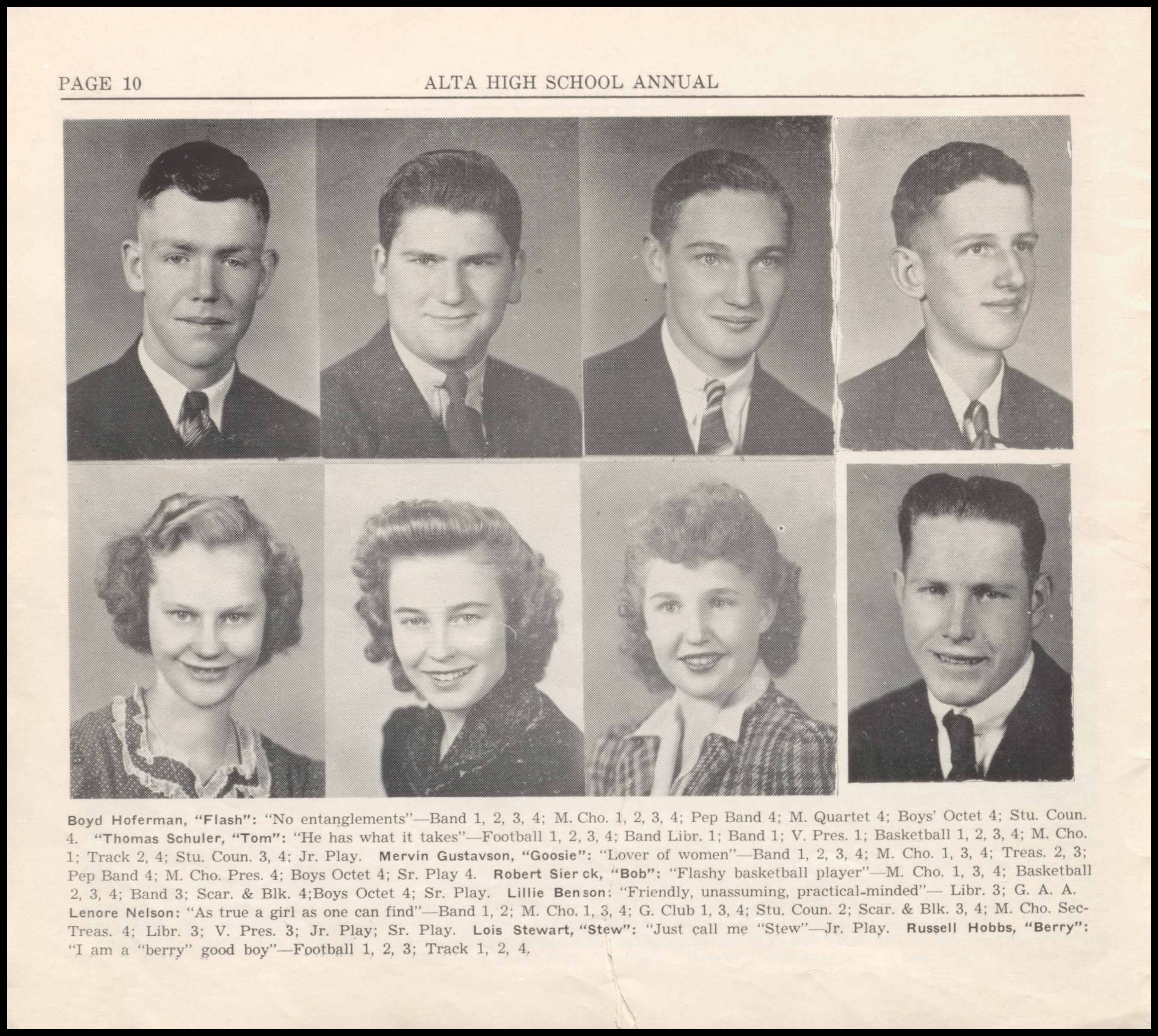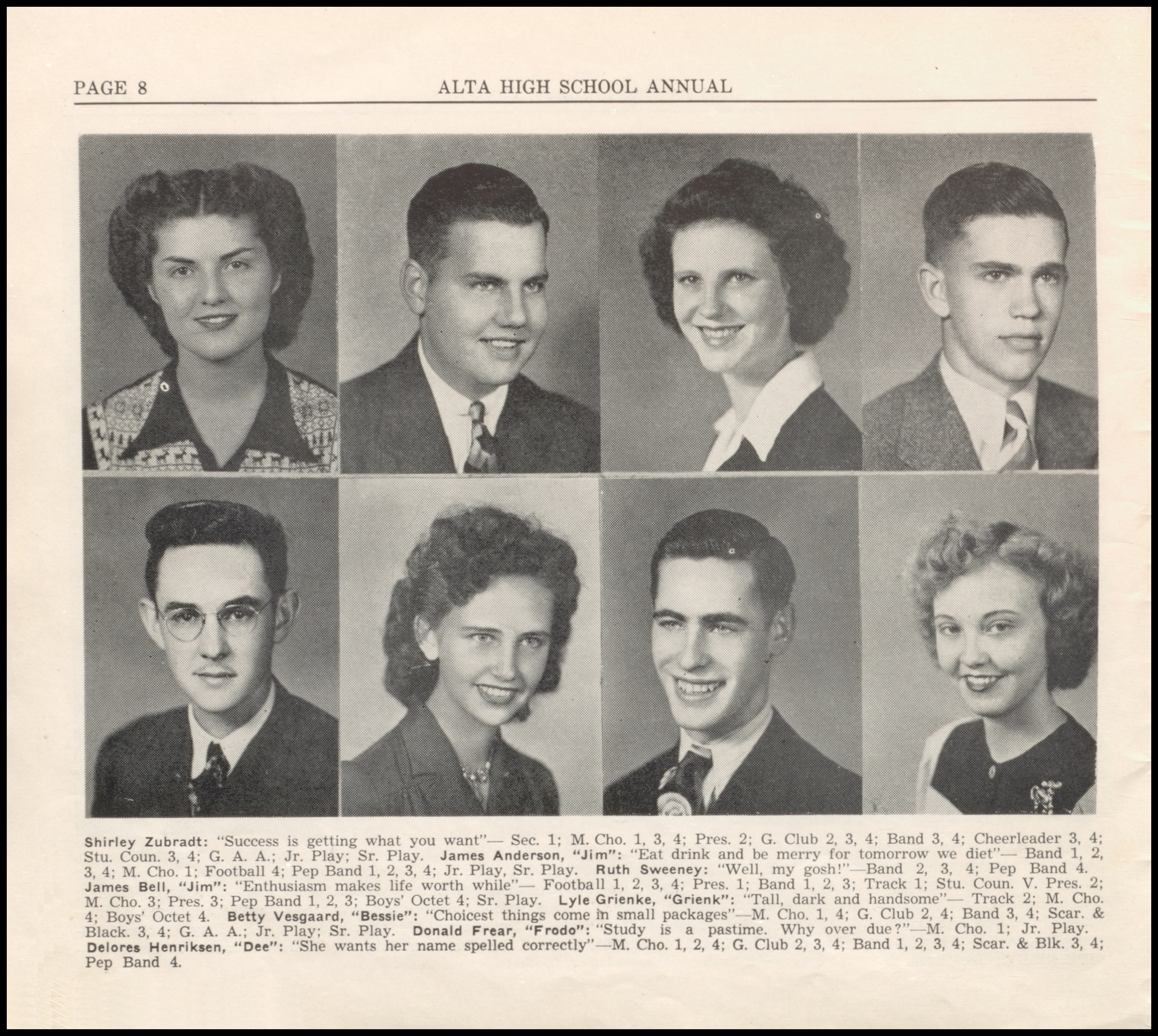 Below are digitized records, available for perusal. Please note that 1946 is not available in digital form, but is available at the Alta Community Library. This section is a work in progress. If you have any questions about yearbooks, feel free to contact us!