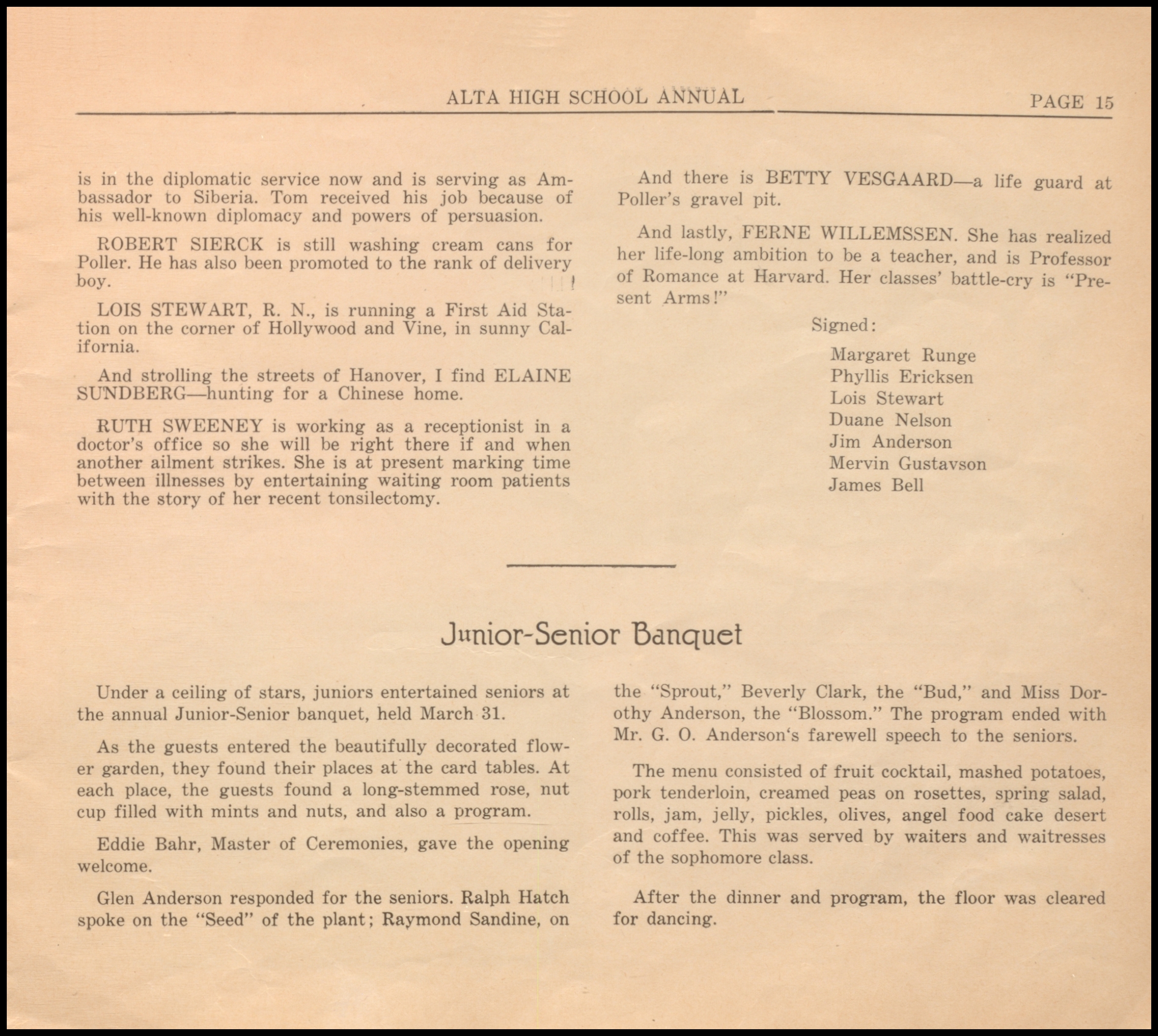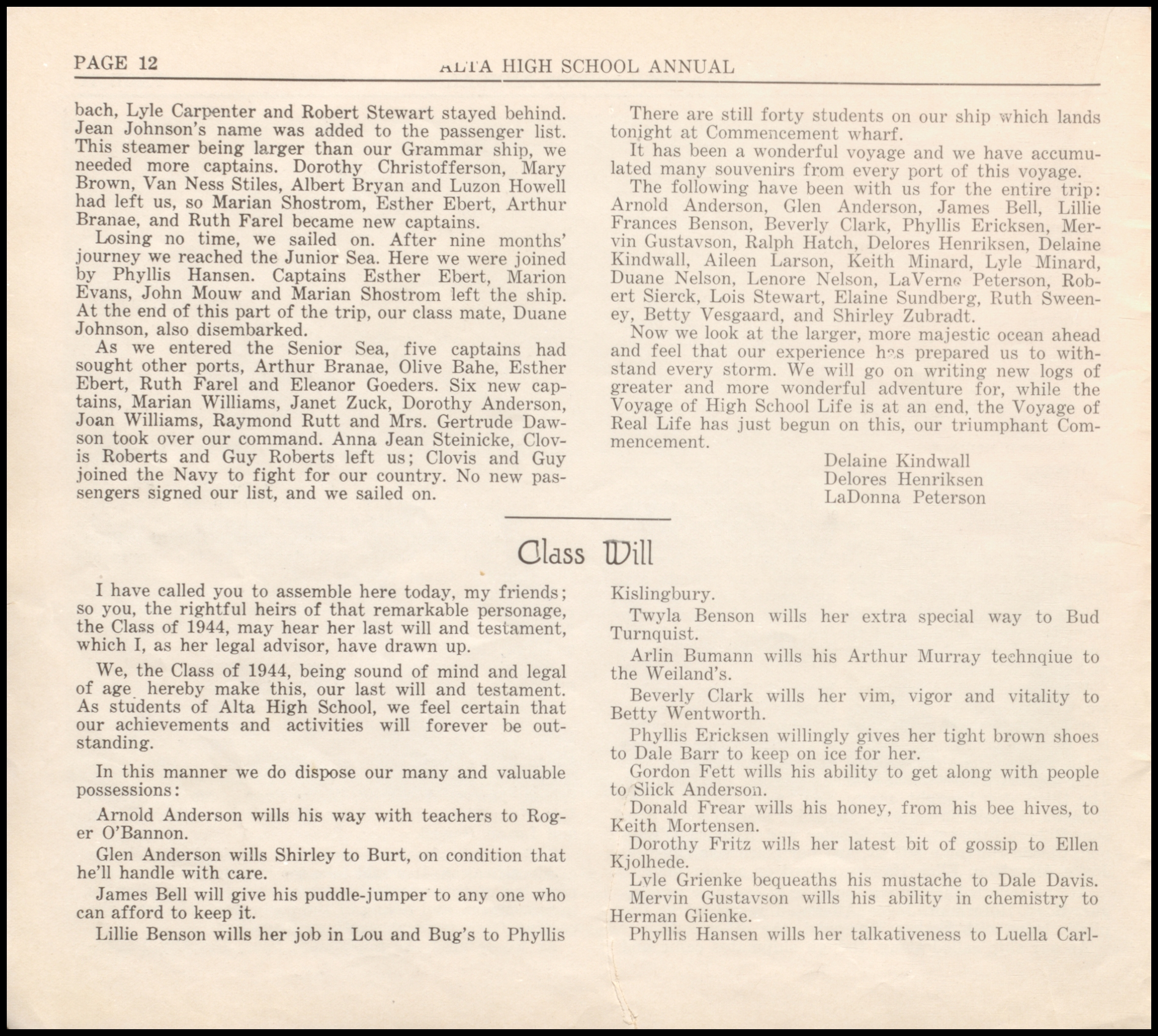 Below are digitized records, available for perusal. Please note that 1946 is not available in digital form, but is available at the Alta Community Library. This section is a work in progress. If you have any questions about yearbooks, feel free to contact us!