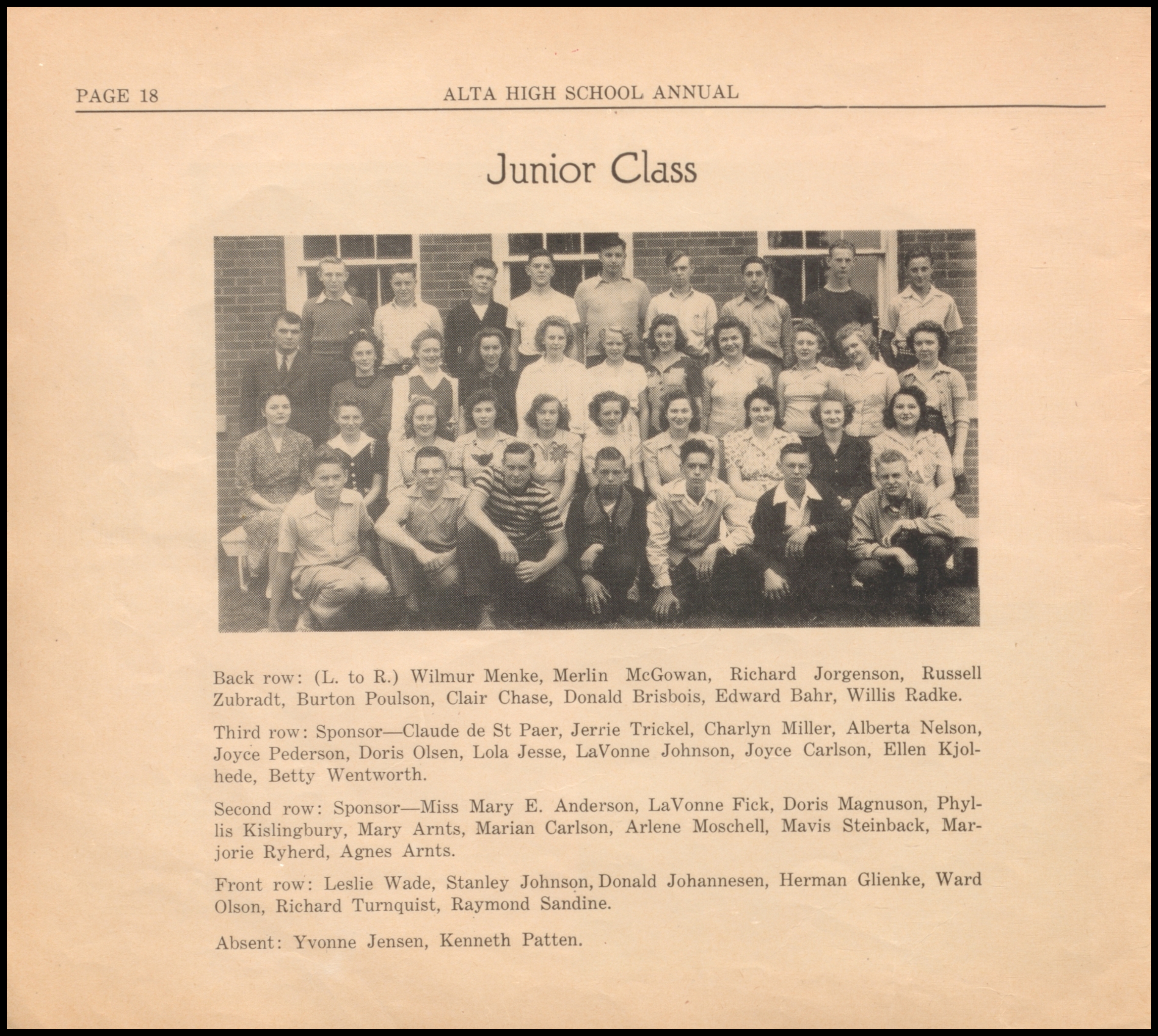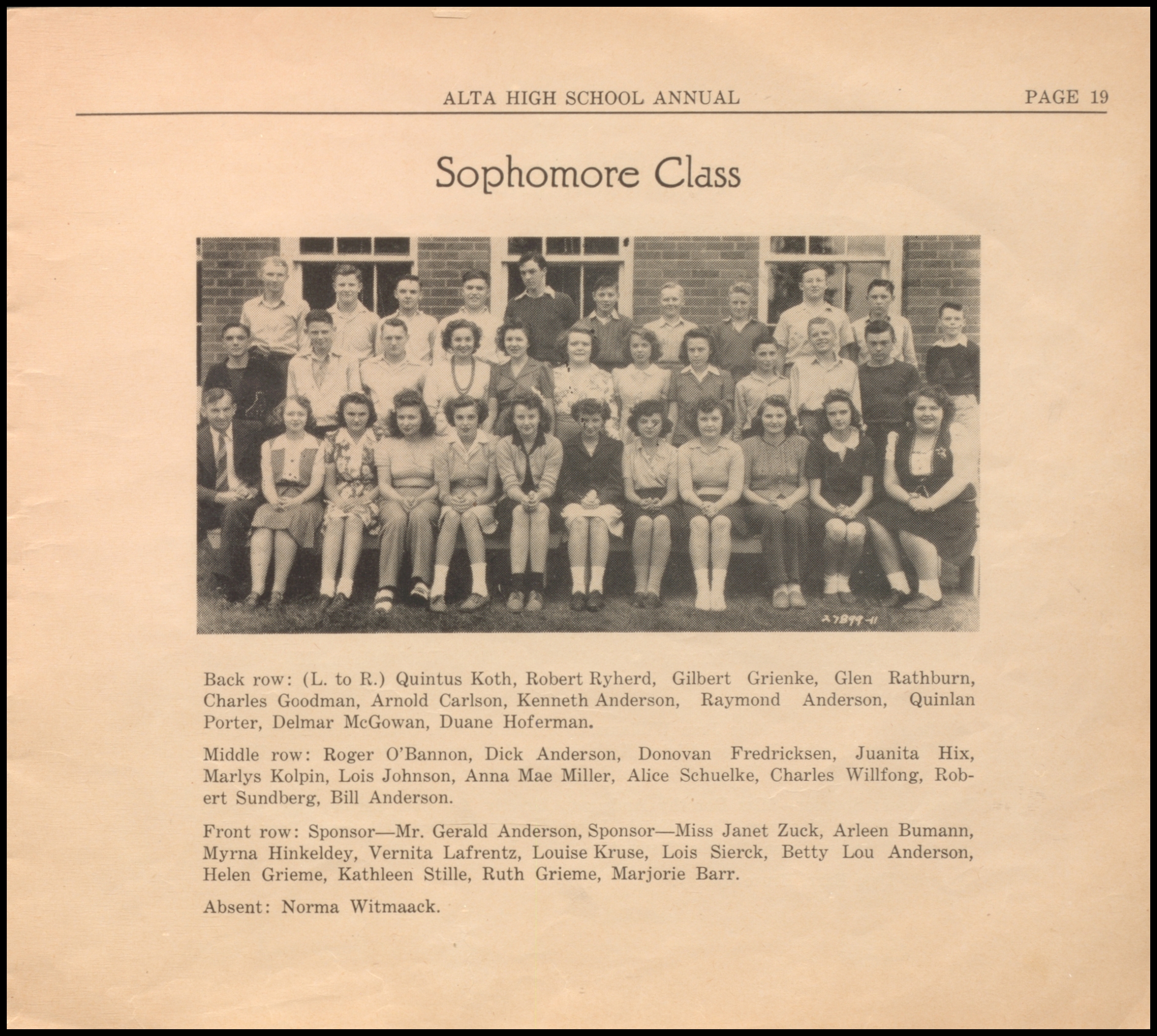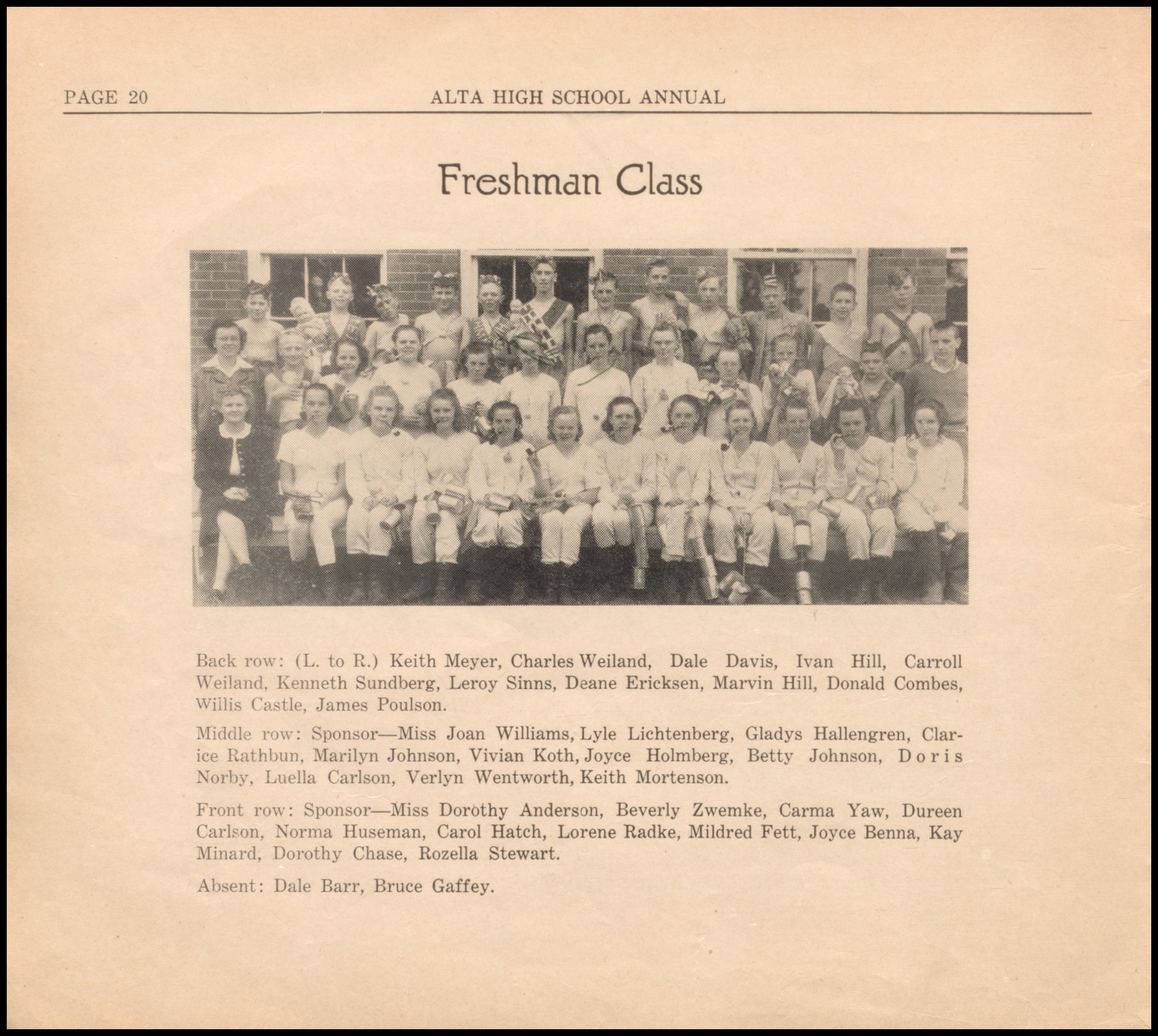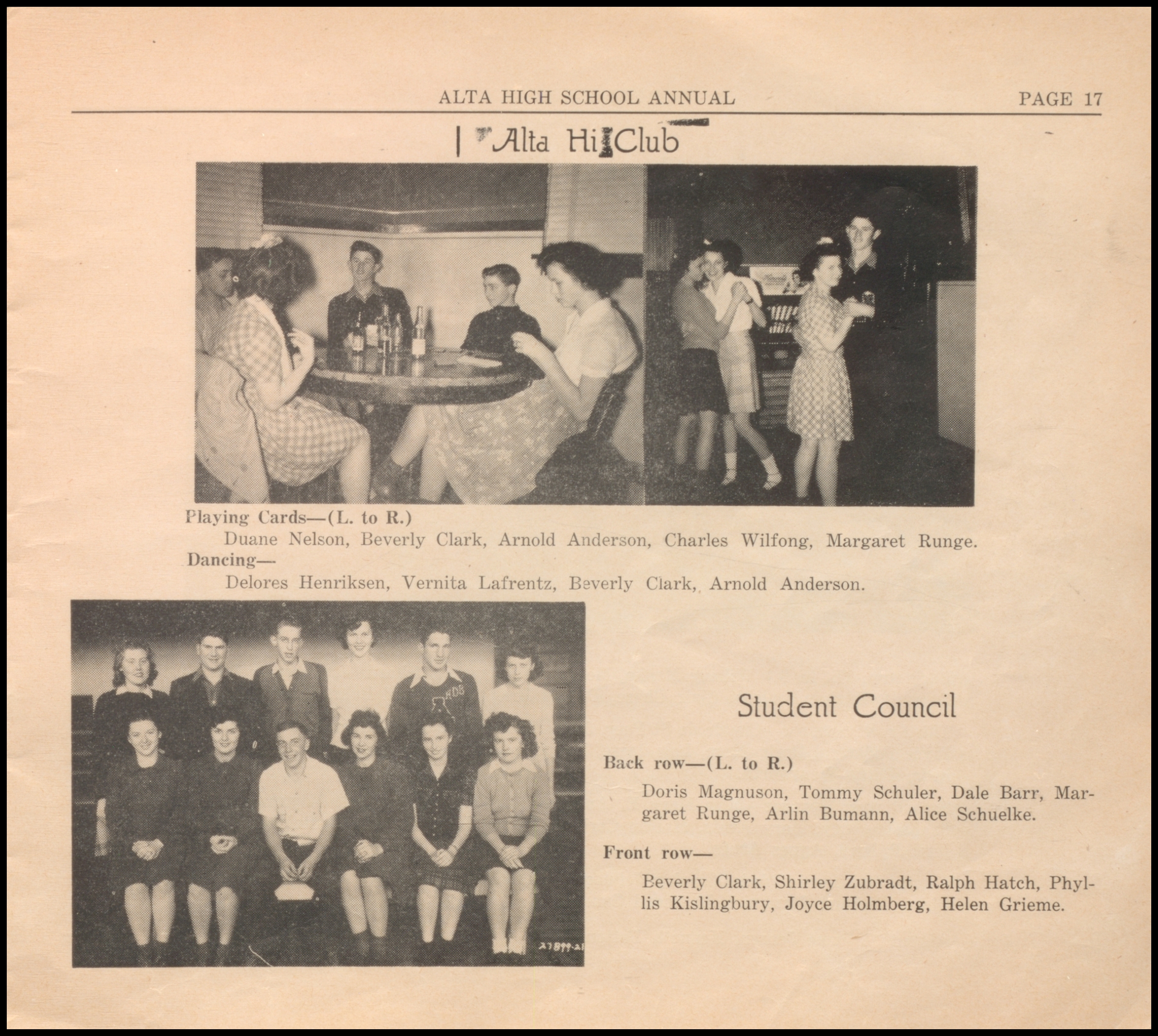 Below are digitized records, available for perusal. Please note that 1946 is not available in digital form, but is available at the Alta Community Library. This section is a work in progress. If you have any questions about yearbooks, feel free to contact us!