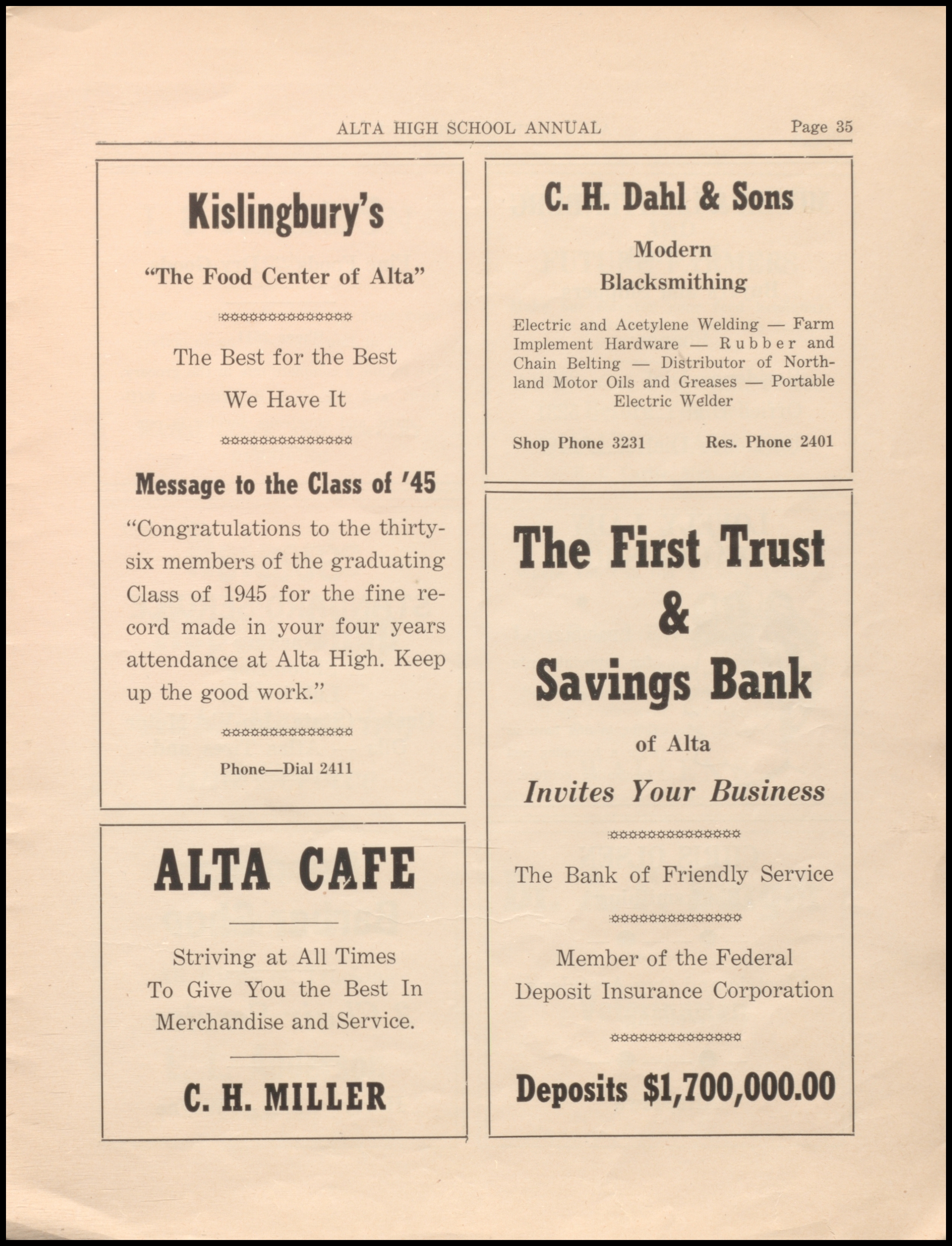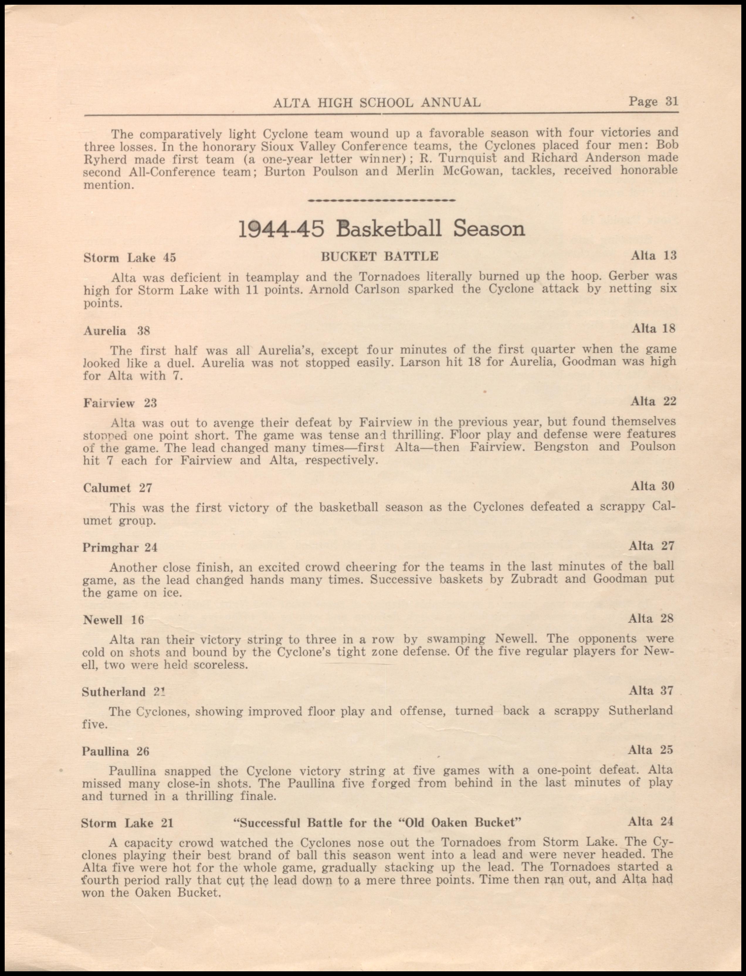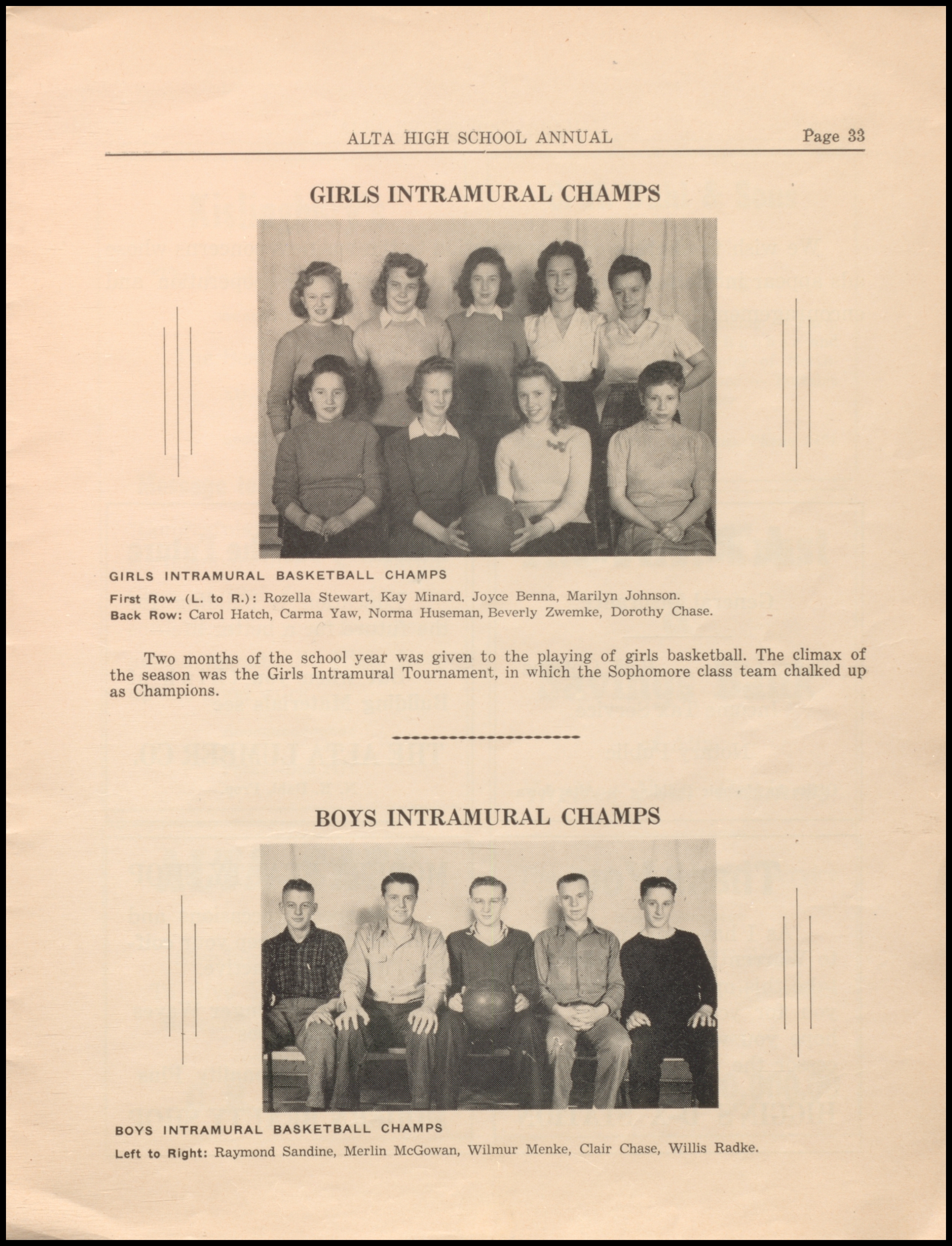 Below are digitized records, available for perusal. Please note that 1946 is not available in digital form, but is available at the Alta Community Library. This section is a work in progress. If you have any questions about yearbooks, feel free to contact us!