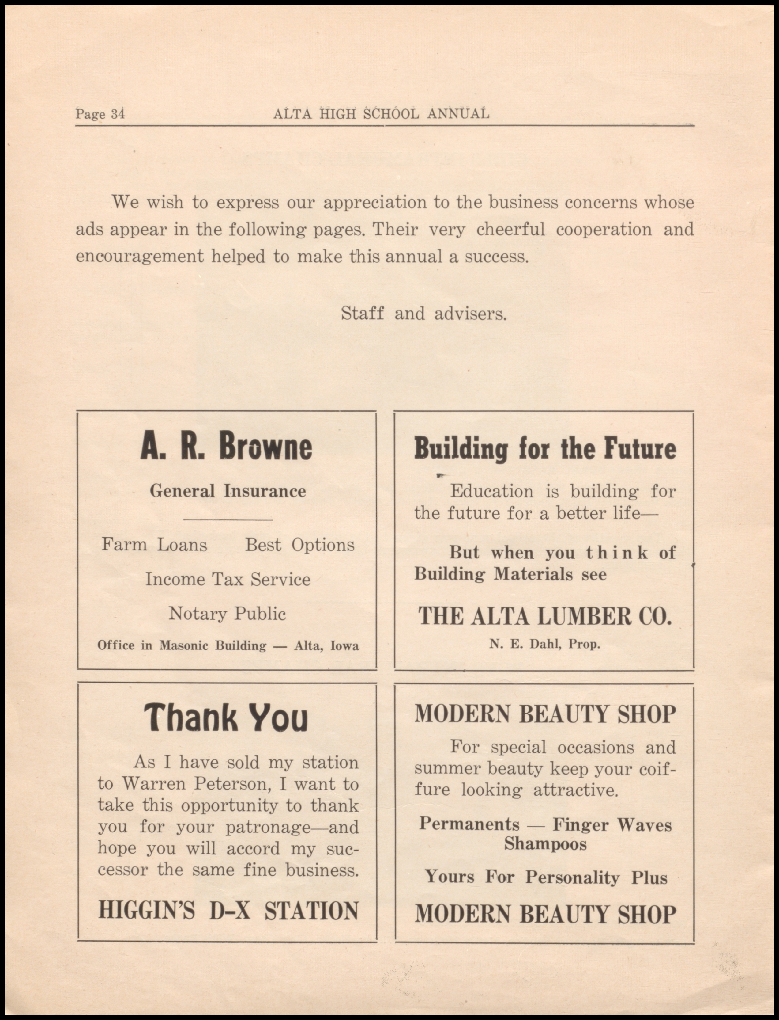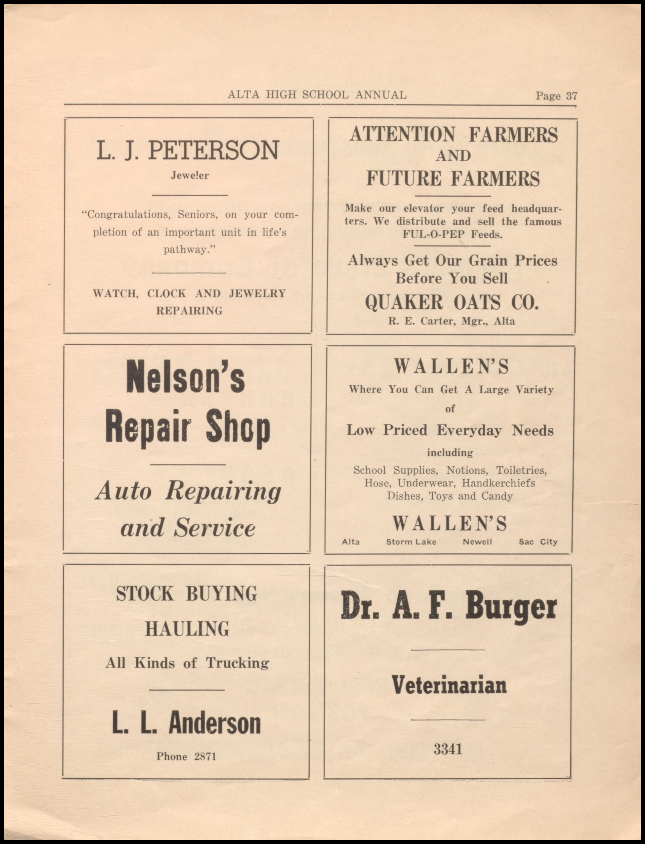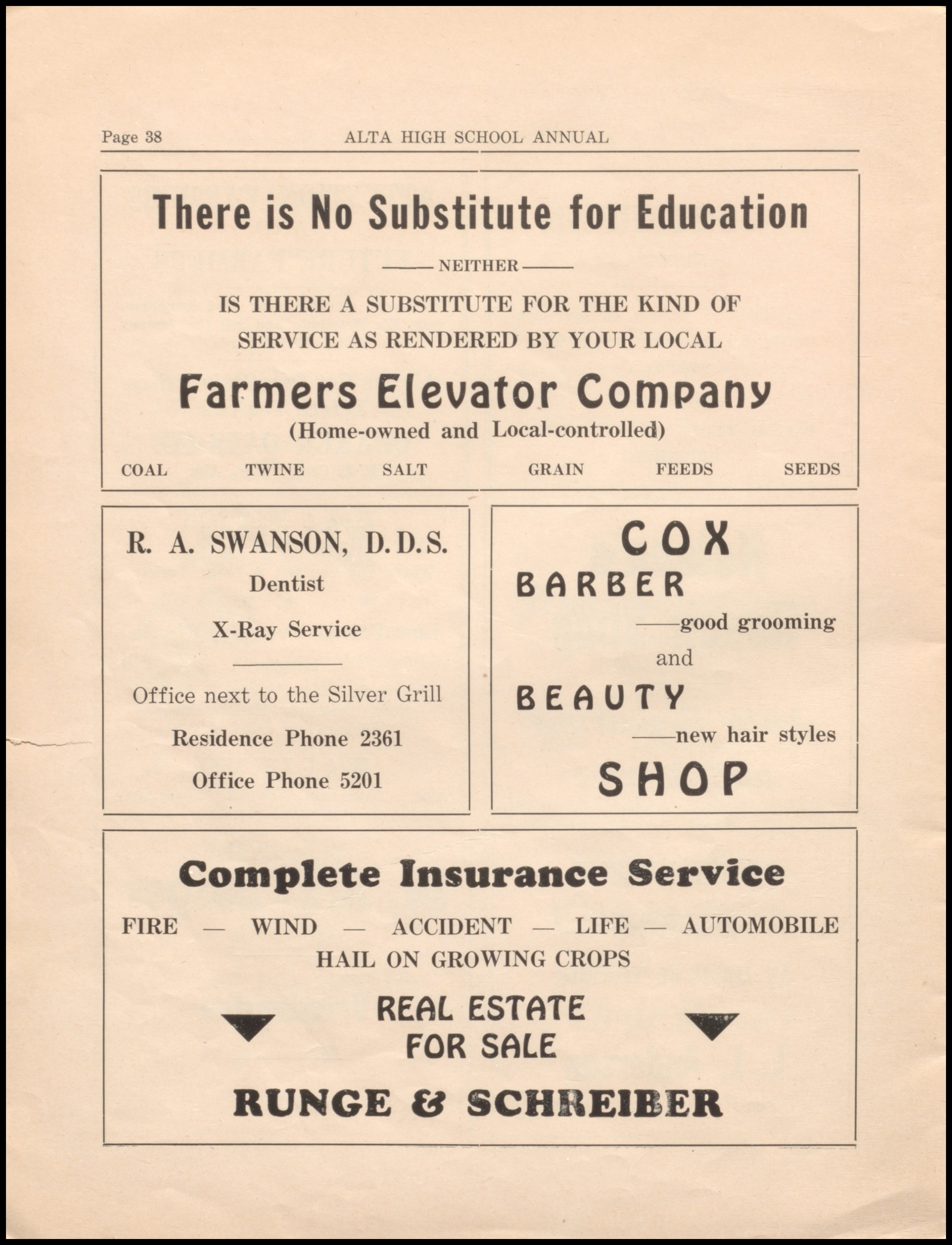 Below are digitized records, available for perusal. Please note that 1946 is not available in digital form, but is available at the Alta Community Library. This section is a work in progress. If you have any questions about yearbooks, feel free to contact us!