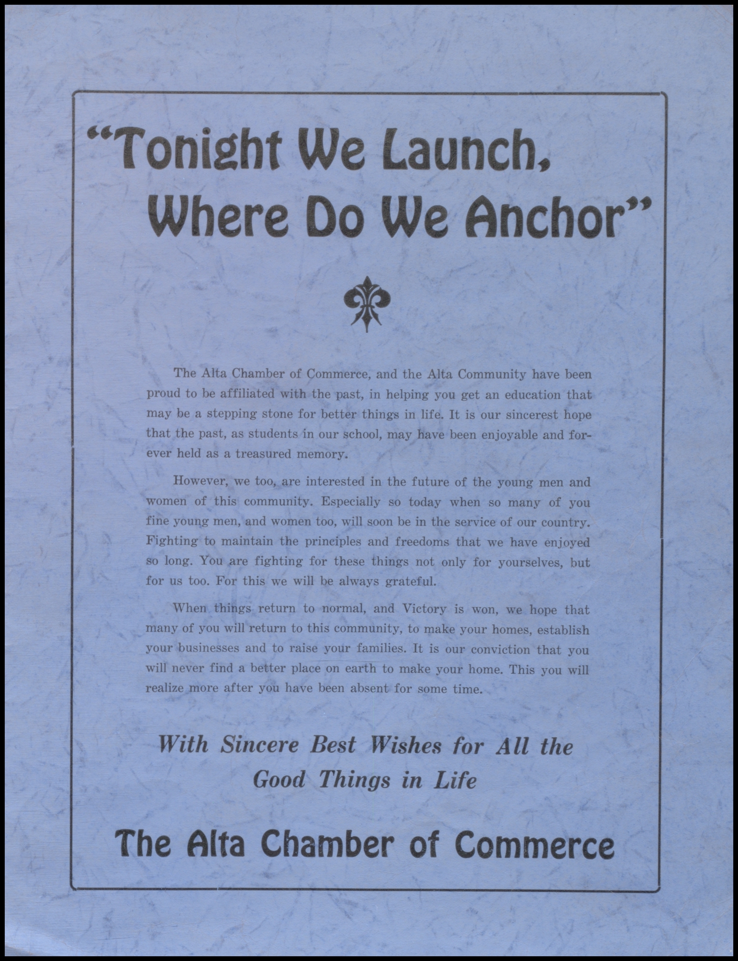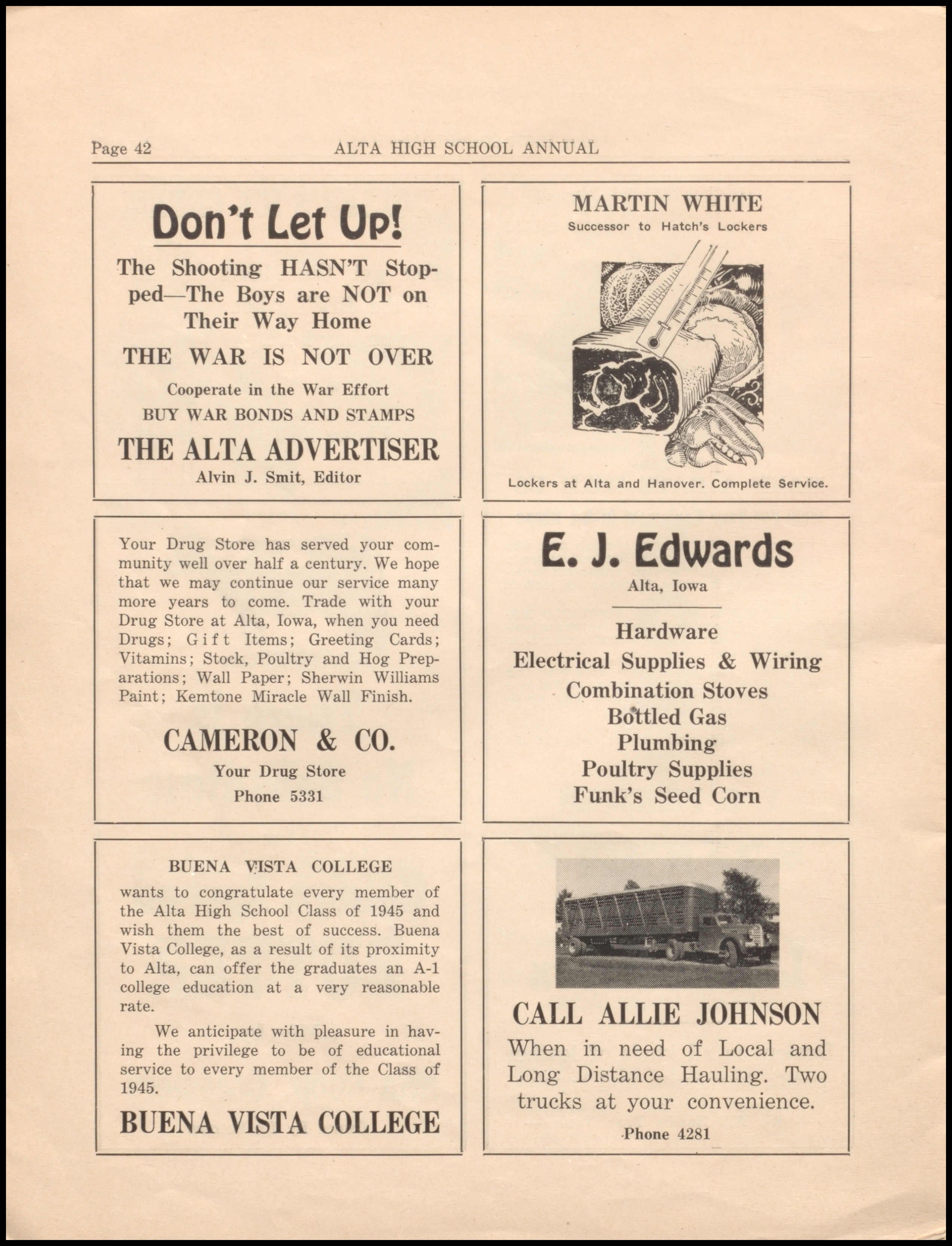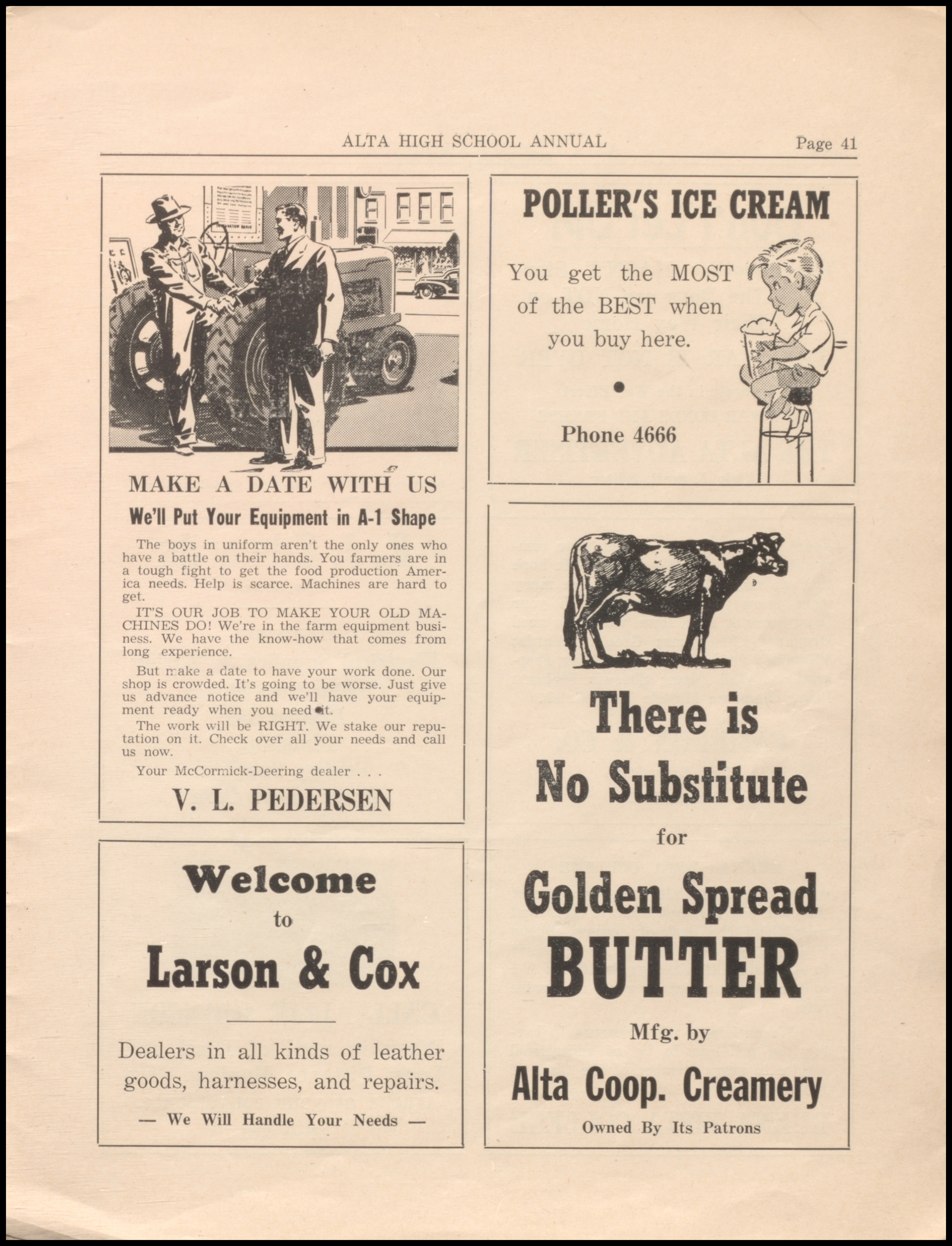 Below are digitized records, available for perusal. Please note that 1946 is not available in digital form, but is available at the Alta Community Library. This section is a work in progress. If you have any questions about yearbooks, feel free to contact us!