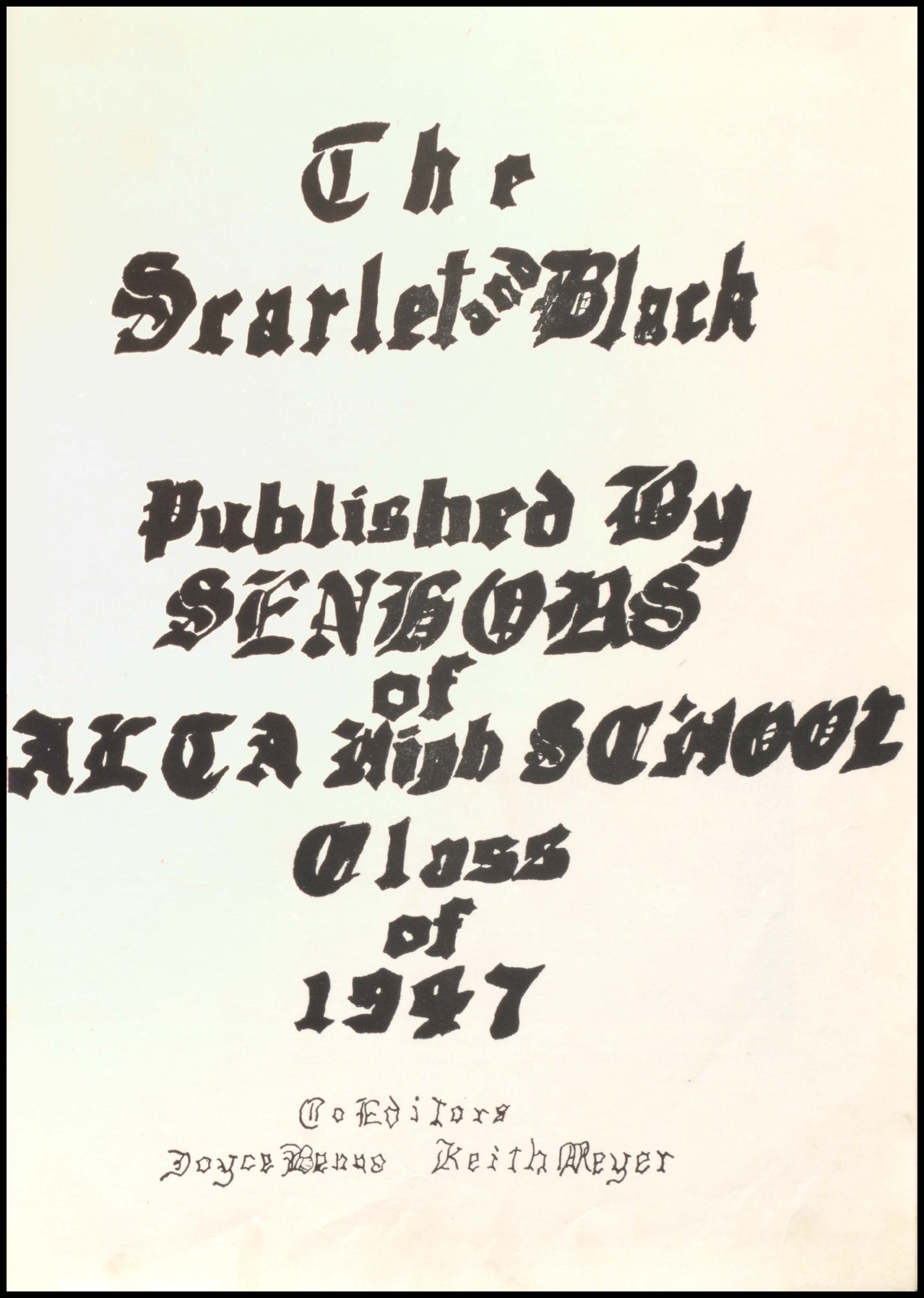 The Alta Community Library keeps one copy of the Alta community school(s) yearbooks on hand. These items are reference only, and may not be checked out. Our collection dates back to the Alta Community Schools Scarlet and Black 1944 edition, and we have most years up through the current Alta-Aurelia High School yearbook. In addition to physical copies, most of the yearbooks have been digitized, up through 2013.