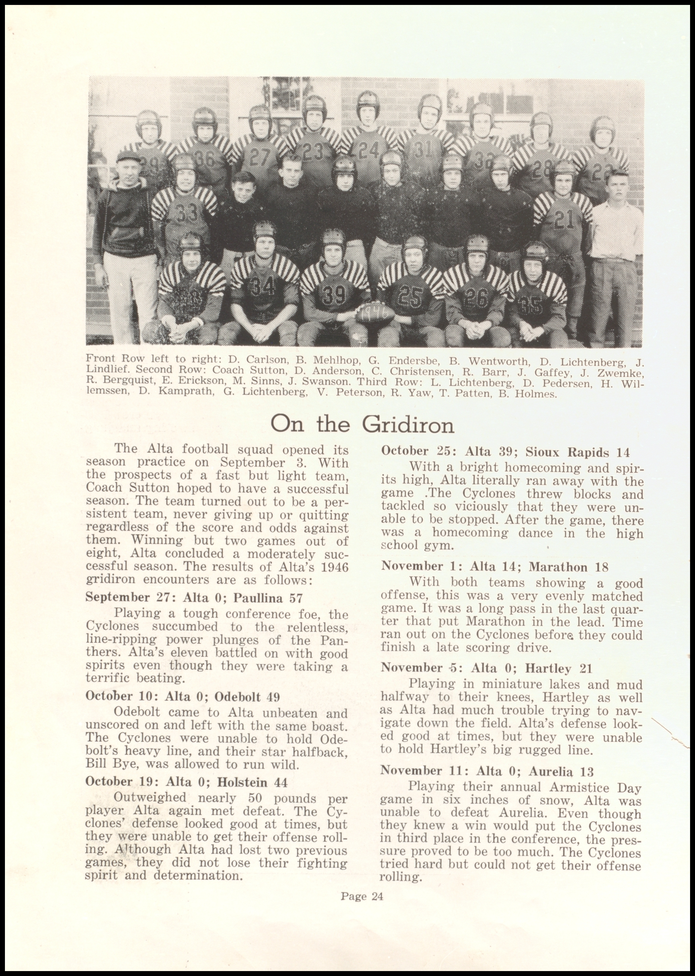 Below are digitized records, available for perusal. Please note that 1946 is not available in digital form, but is available at the Alta Community Library. This section is a work in progress. If you have any questions about yearbooks, feel free to contact us!