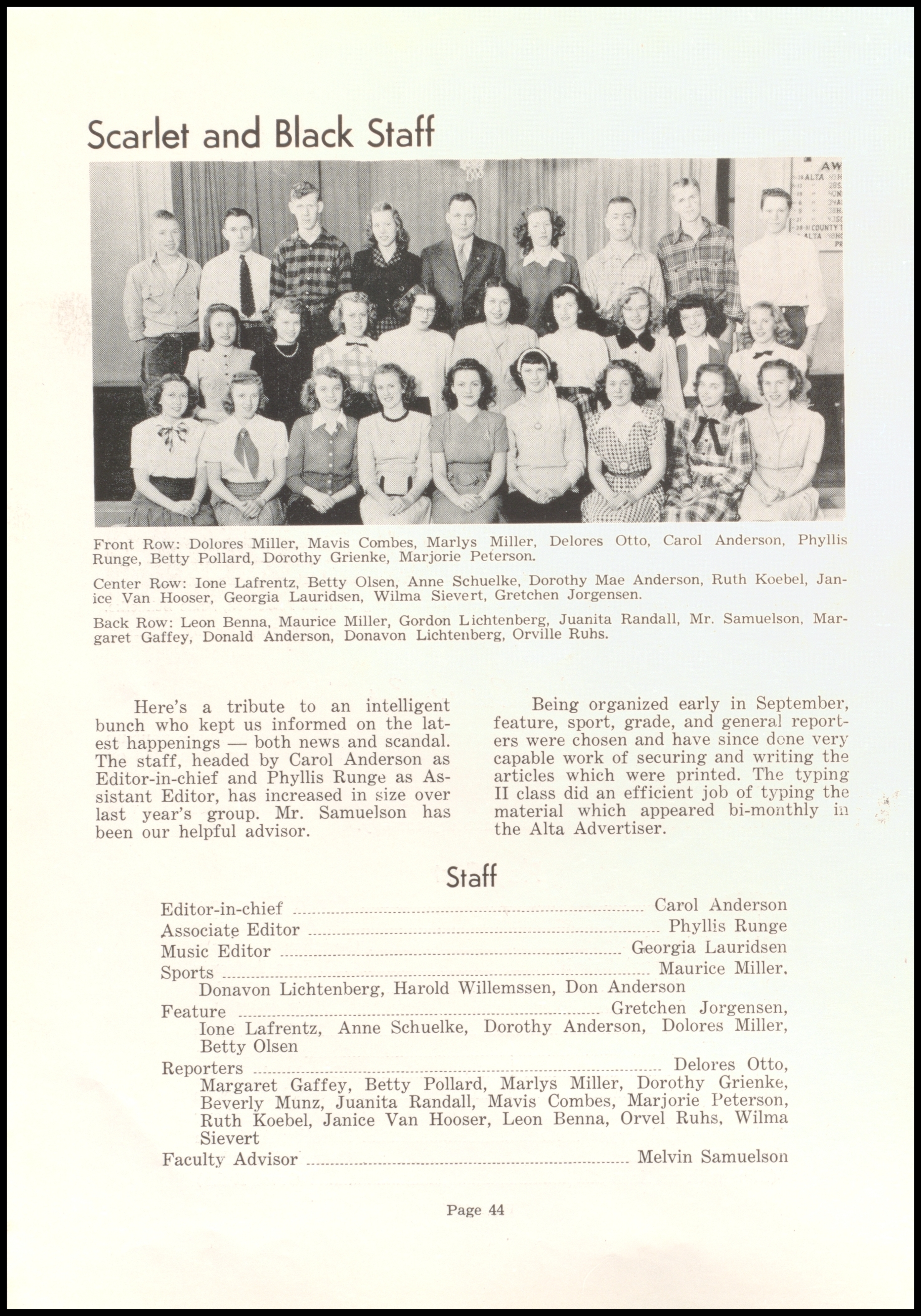 Below are digitized records, available for perusal. Please note that 1946 is not available in digital form, but is available at the Alta Community Library. This section is a work in progress. If you have any questions about yearbooks, feel free to contact us!