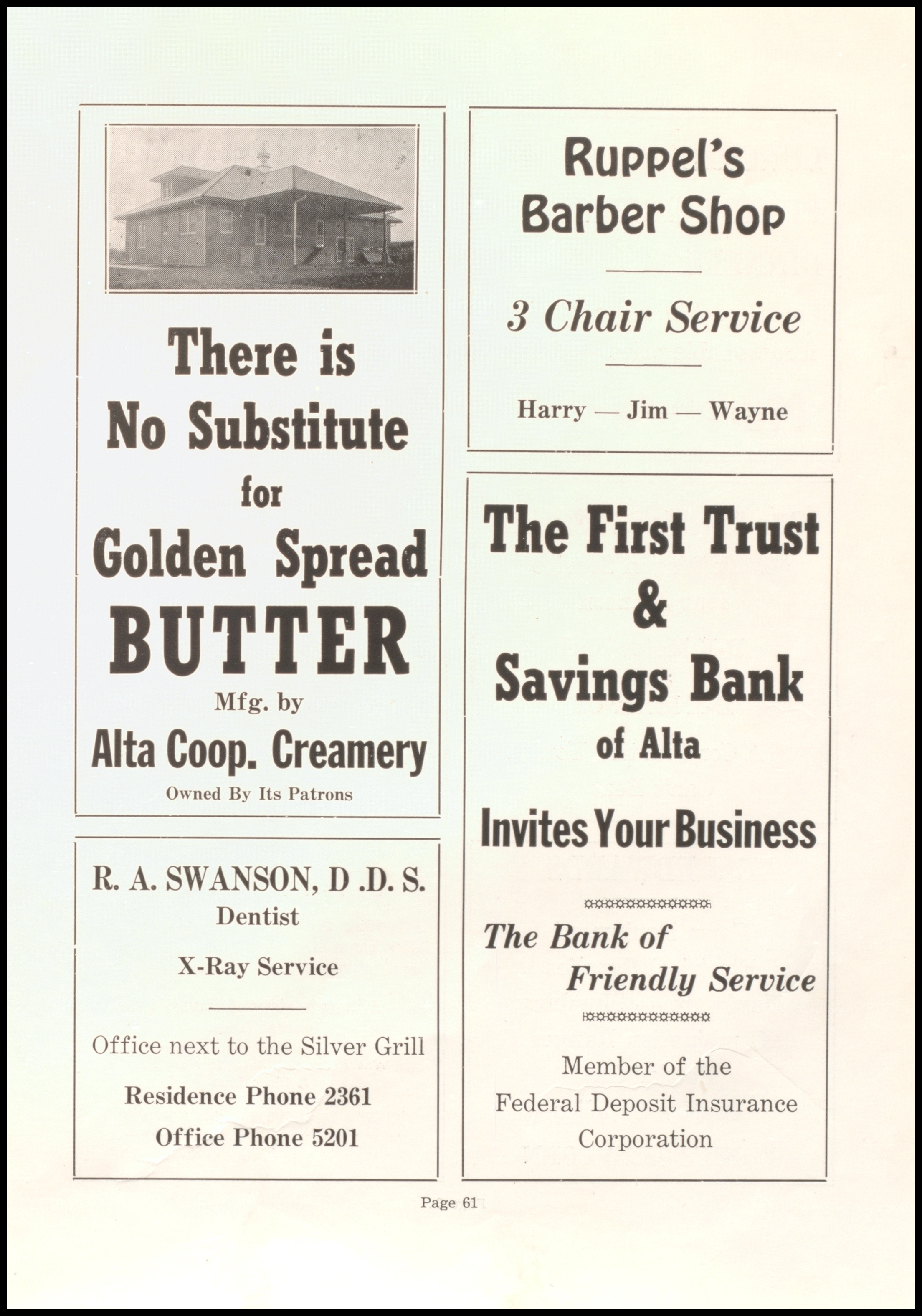 Below are digitized records, available for perusal. Please note that 1946 is not available in digital form, but is available at the Alta Community Library. This section is a work in progress. If you have any questions about yearbooks, feel free to contact us!