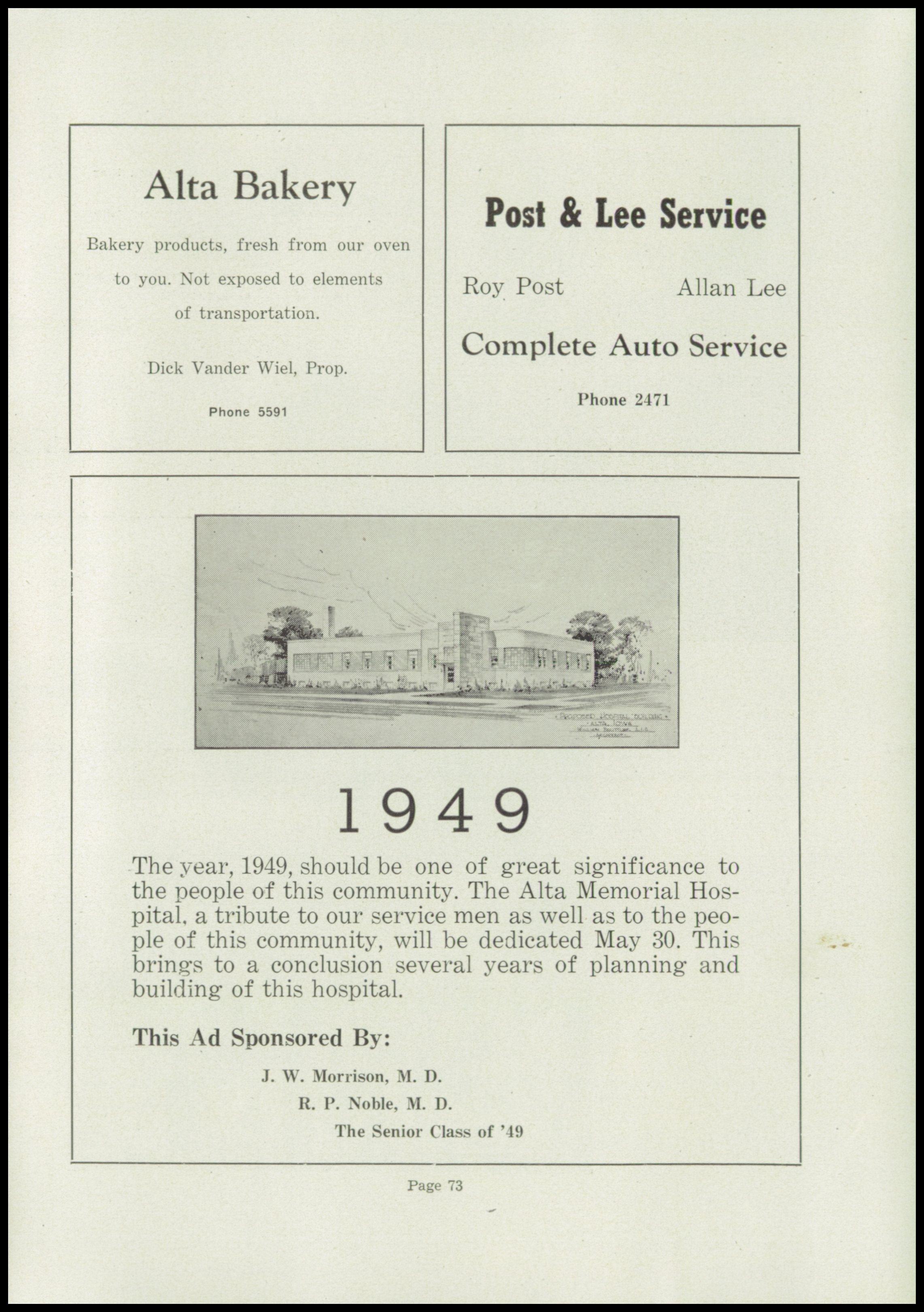 Below are digitized records, available for perusal. Please note that 1946 is not available in digital form, but is available at the Alta Community Library. This section is a work in progress. If you have any questions about yearbooks, feel free to contact us!