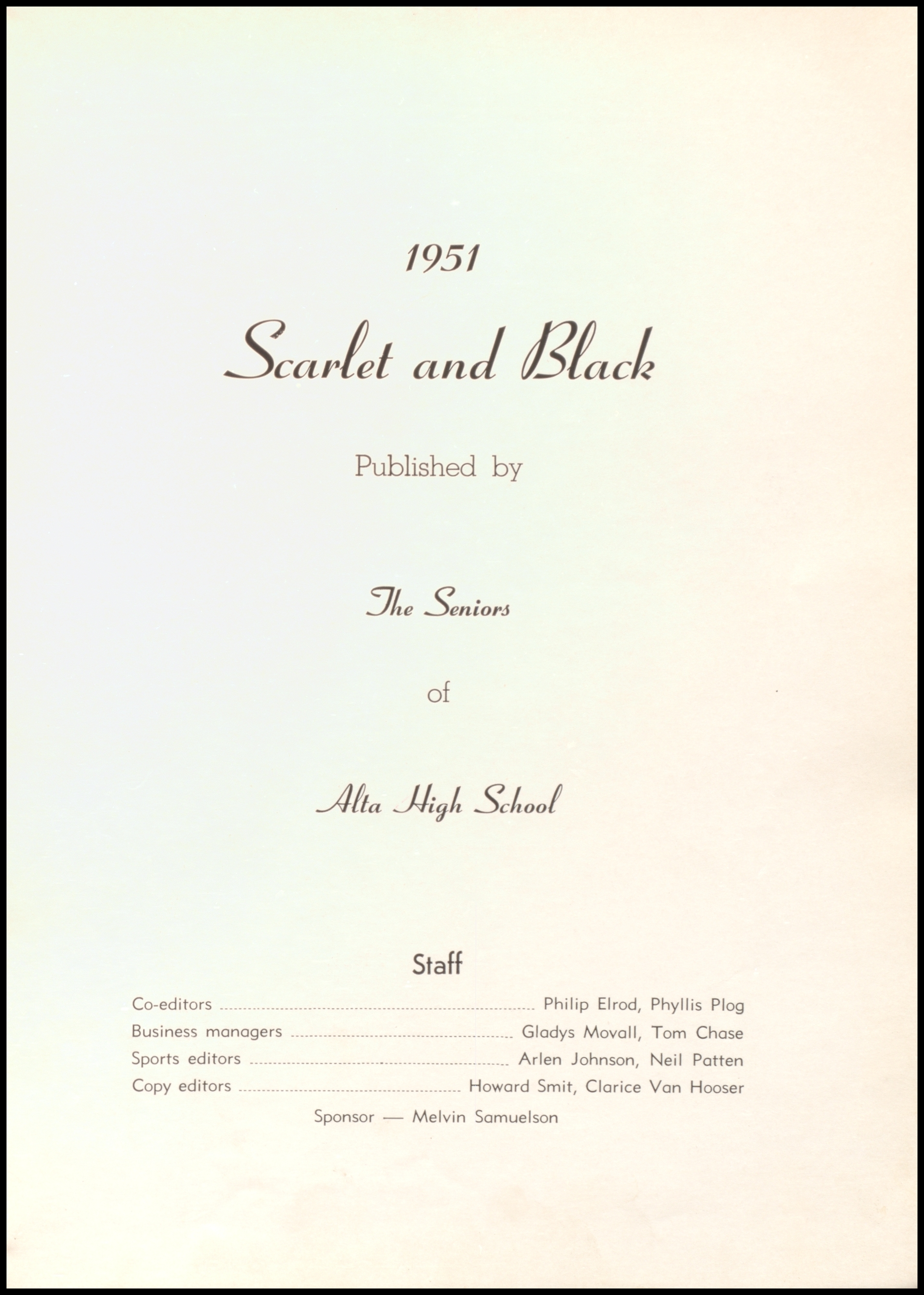 Below are digitized records, available for perusal. Please note that 1946 is not available in digital form, but is available at the Alta Community Library. This section is a work in progress. If you have any questions about yearbooks, feel free to contact us!