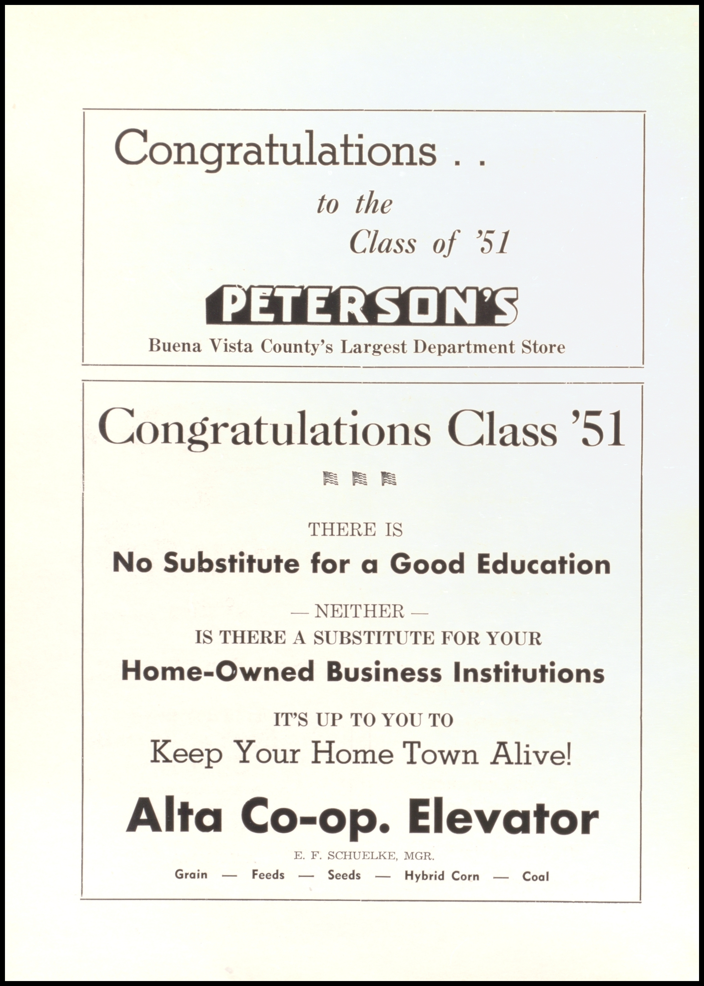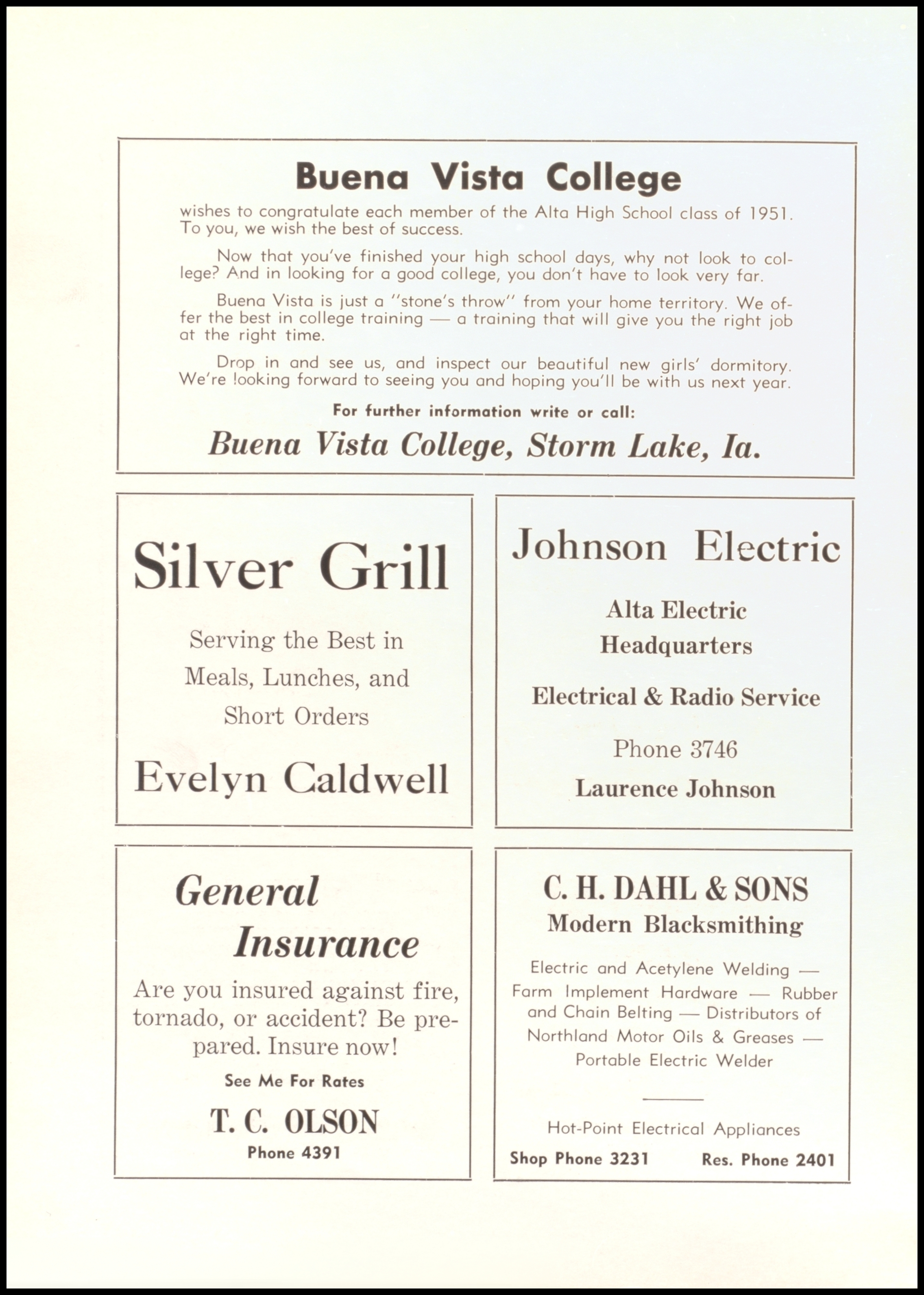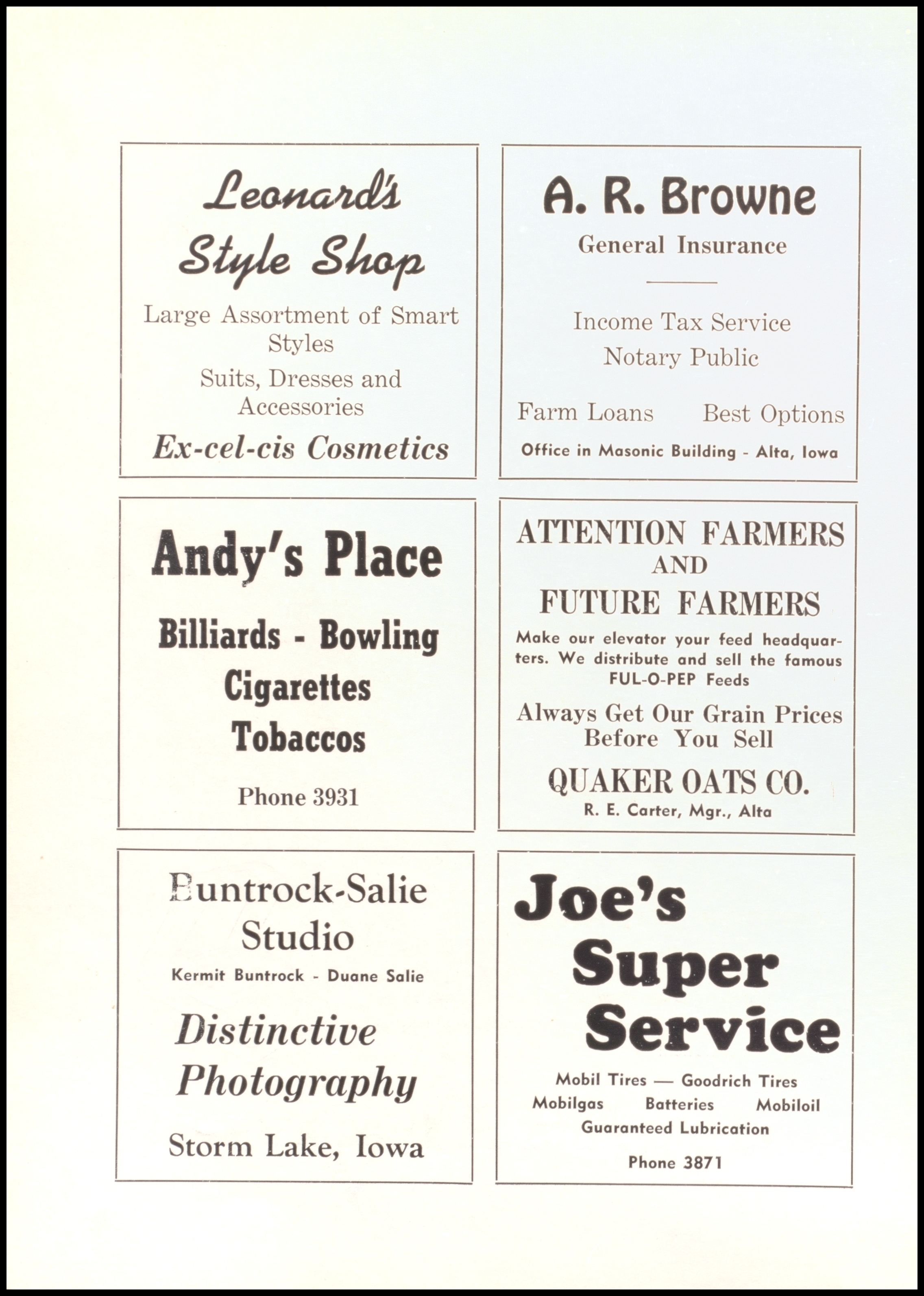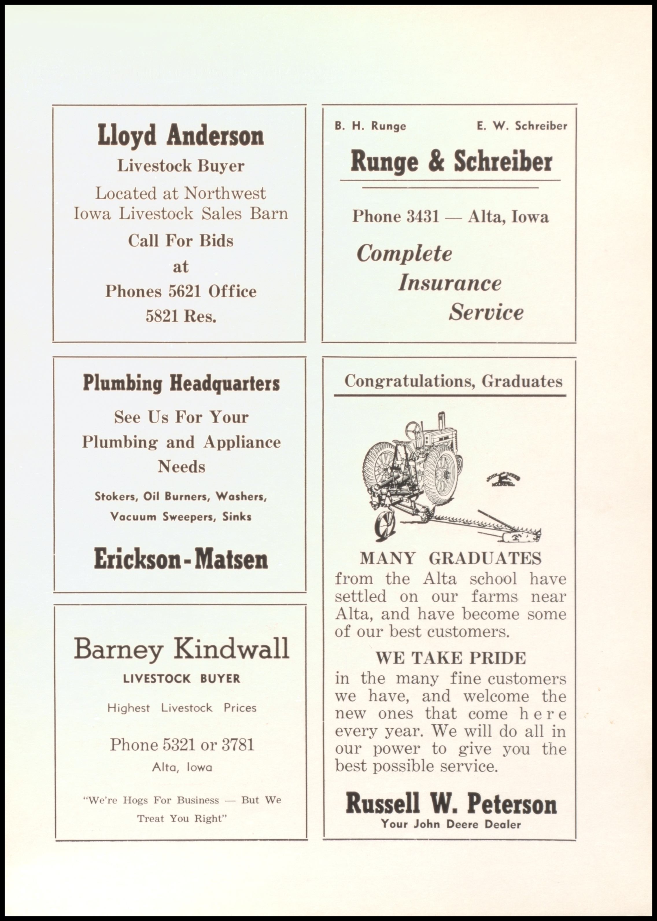 Below are digitized records, available for perusal. Please note that 1946 is not available in digital form, but is available at the Alta Community Library. This section is a work in progress. If you have any questions about yearbooks, feel free to contact us!