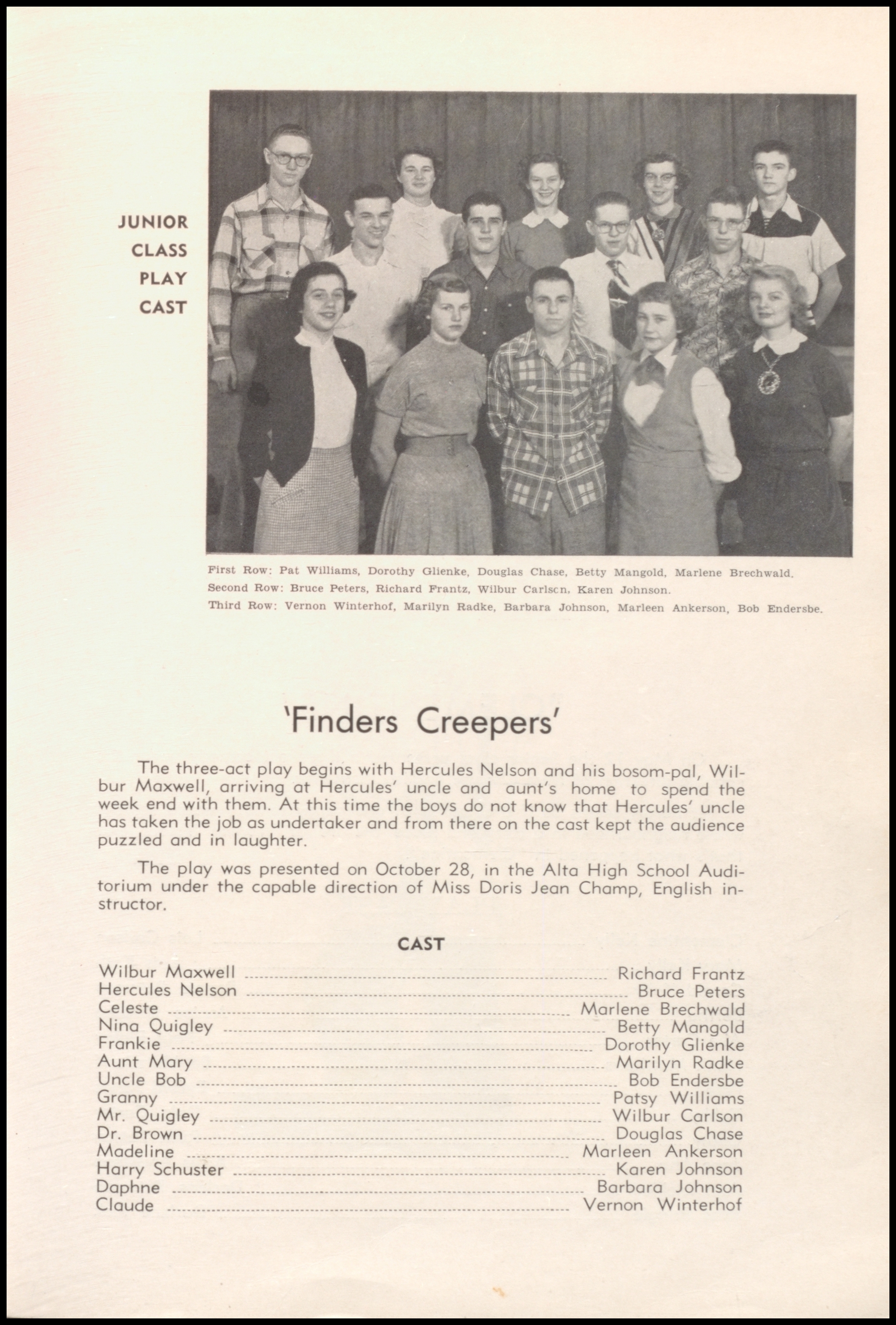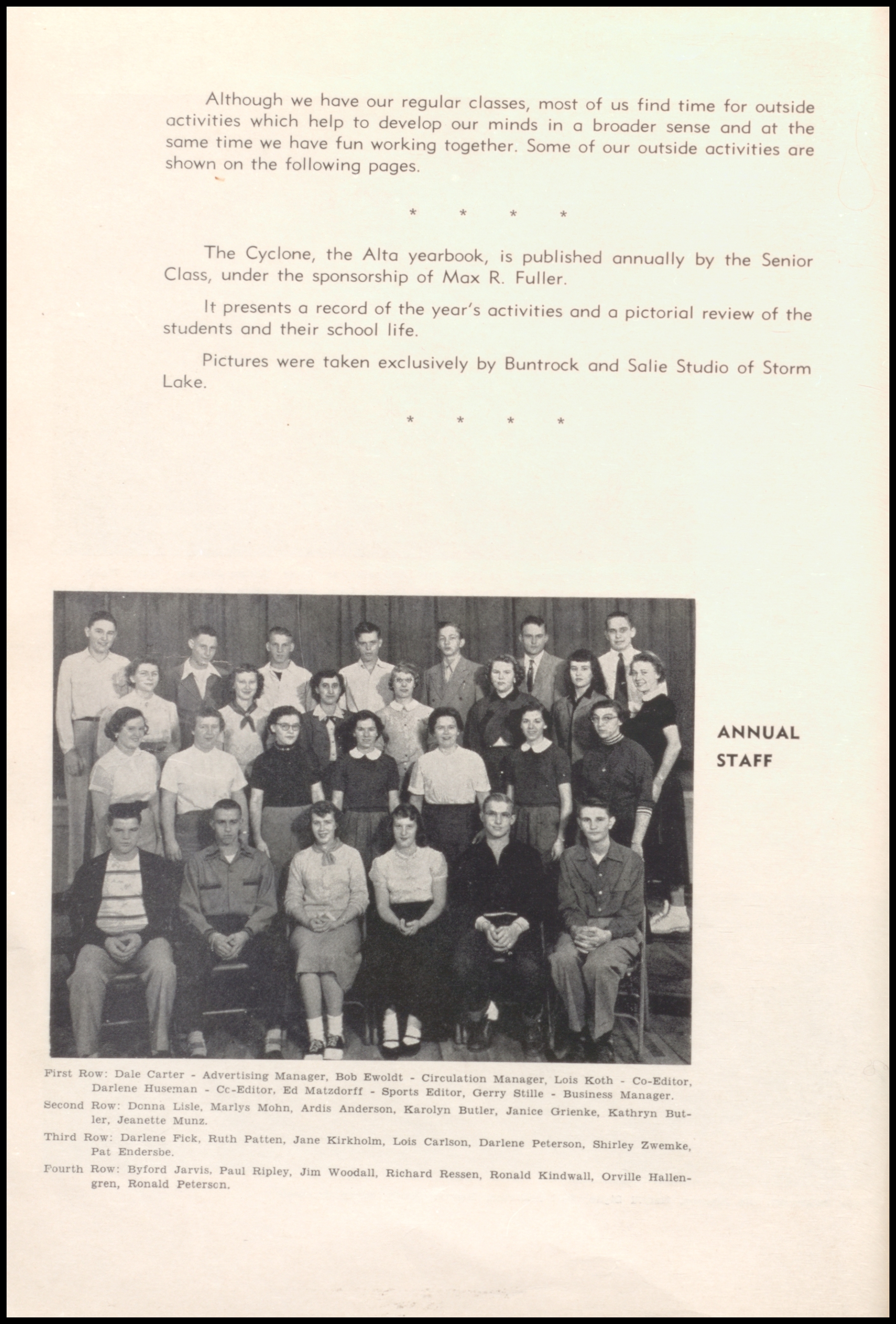 Below are digitized records, available for perusal. Please note that 1946 is not available in digital form, but is available at the Alta Community Library. This section is a work in progress. If you have any questions about yearbooks, feel free to contact us!