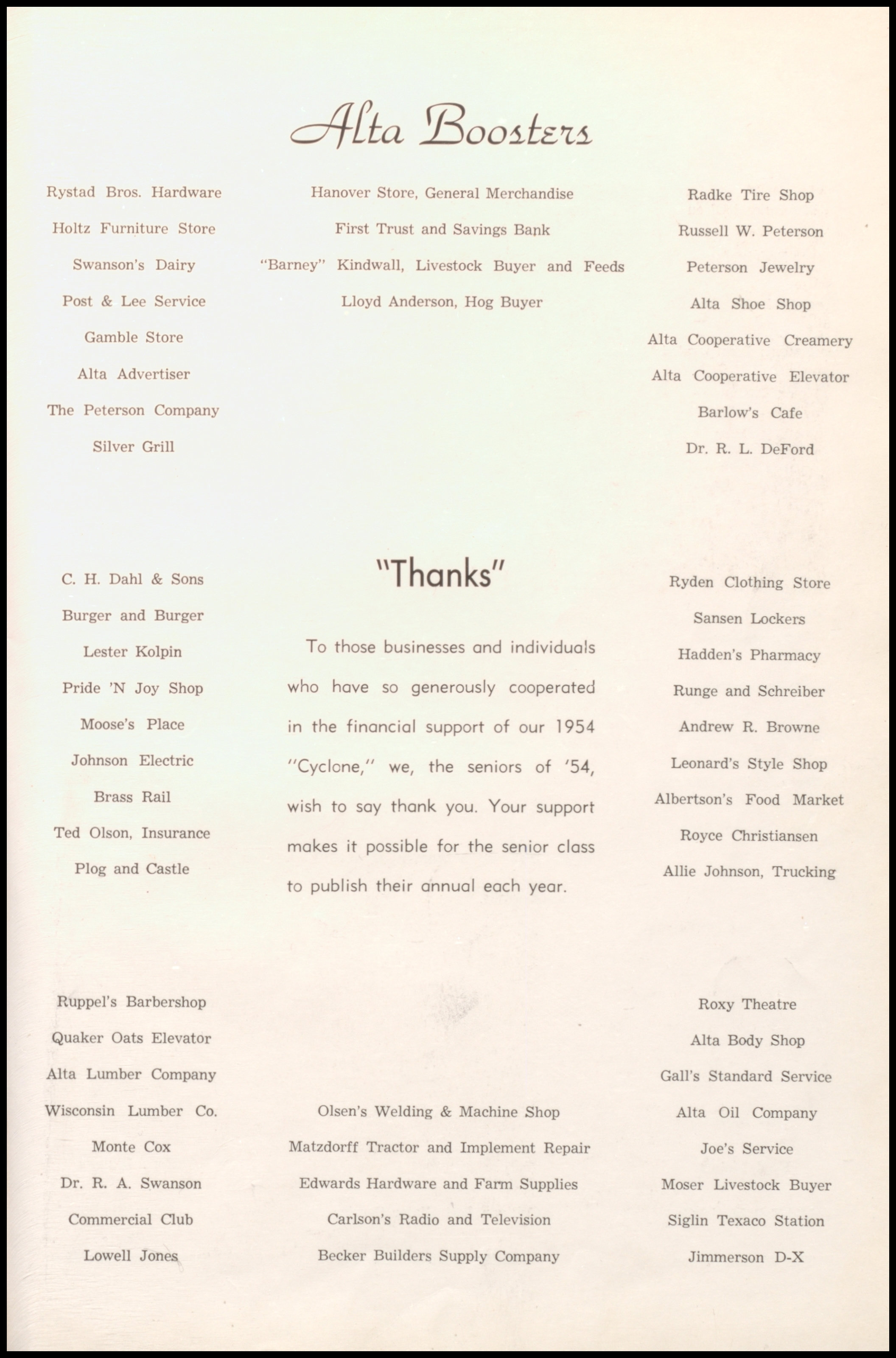 Below are digitized records, available for perusal. Please note that 1946 is not available in digital form, but is available at the Alta Community Library. This section is a work in progress. If you have any questions about yearbooks, feel free to contact us!