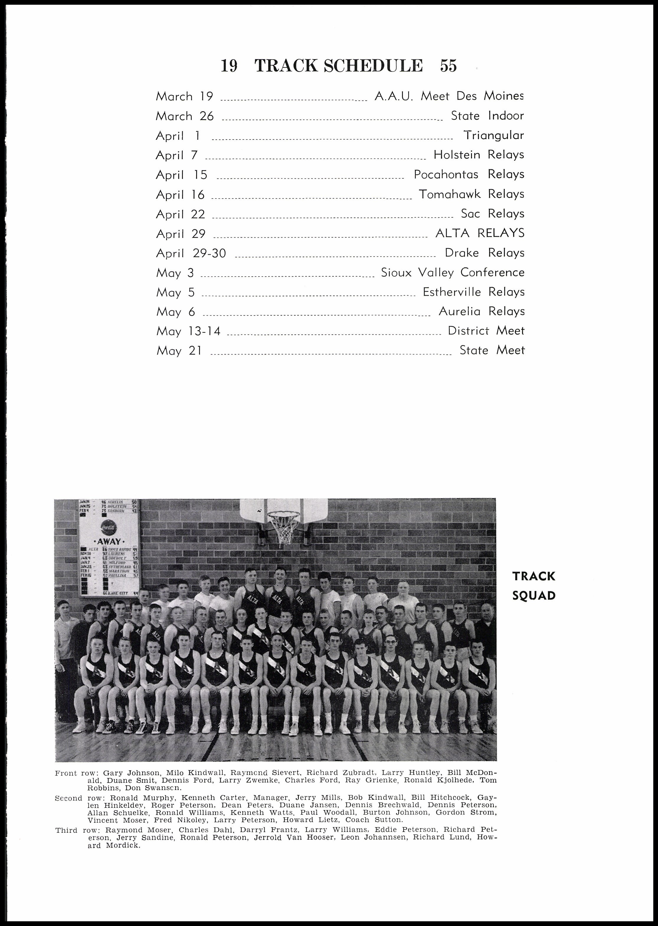 The Alta Community Library keeps one copy of the Alta community school(s) yearbooks on hand. These items are reference only, and may not be checked out. Our collection dates back to the Alta Community Schools Scarlet and Black 1944 edition, and we have most years up through the current Alta-Aurelia High School yearbook. In addition to physical copies, most of the yearbooks have been digitized, up through 2013.