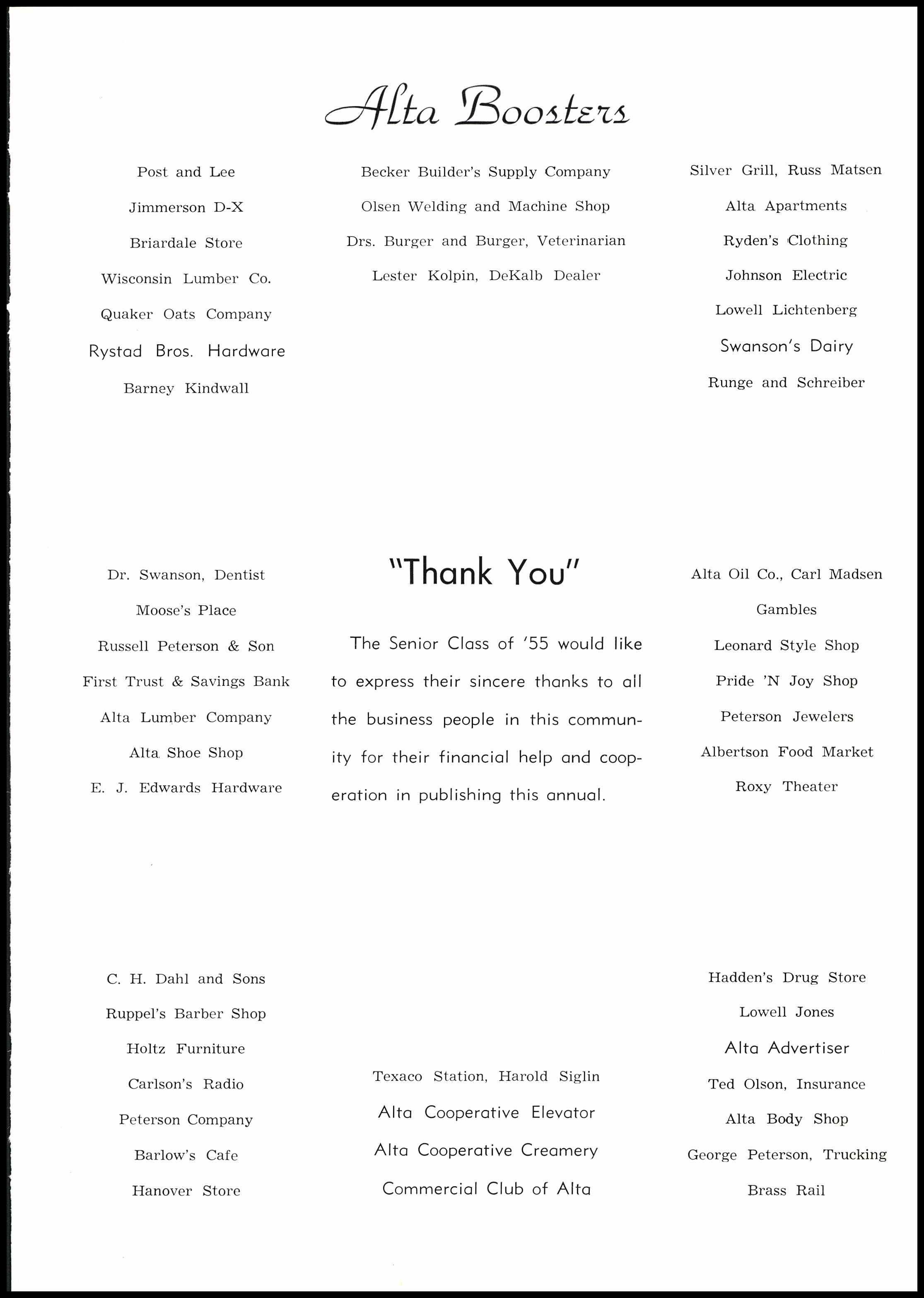 Below are digitized records, available for perusal. Please note that 1946 is not available in digital form, but is available at the Alta Community Library. This section is a work in progress. If you have any questions about yearbooks, feel free to contact us!