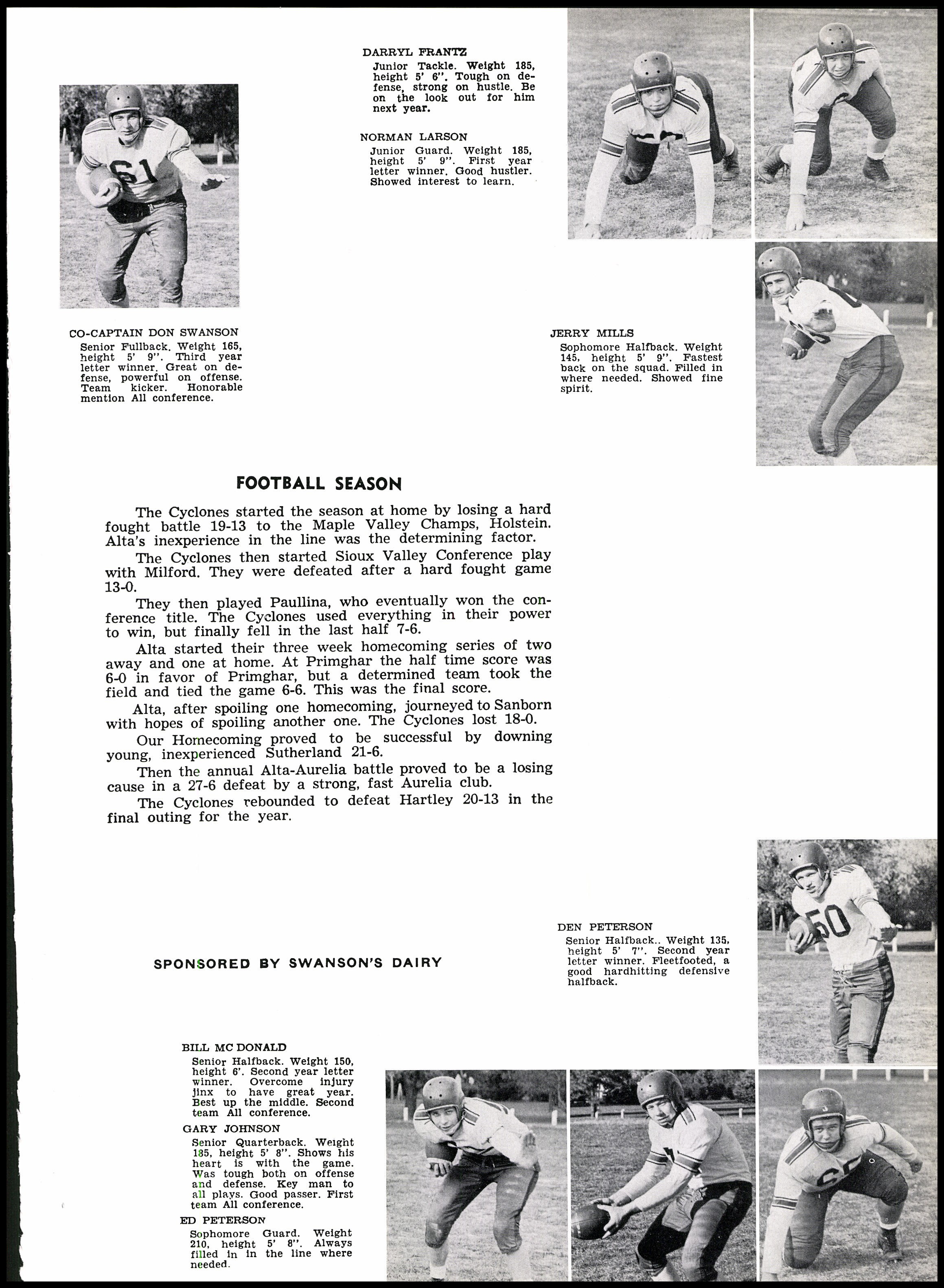 Below are digitized records, available for perusal. Please note that 1946 is not available in digital form, but is available at the Alta Community Library. This section is a work in progress. If you have any questions about yearbooks, feel free to contact us!
