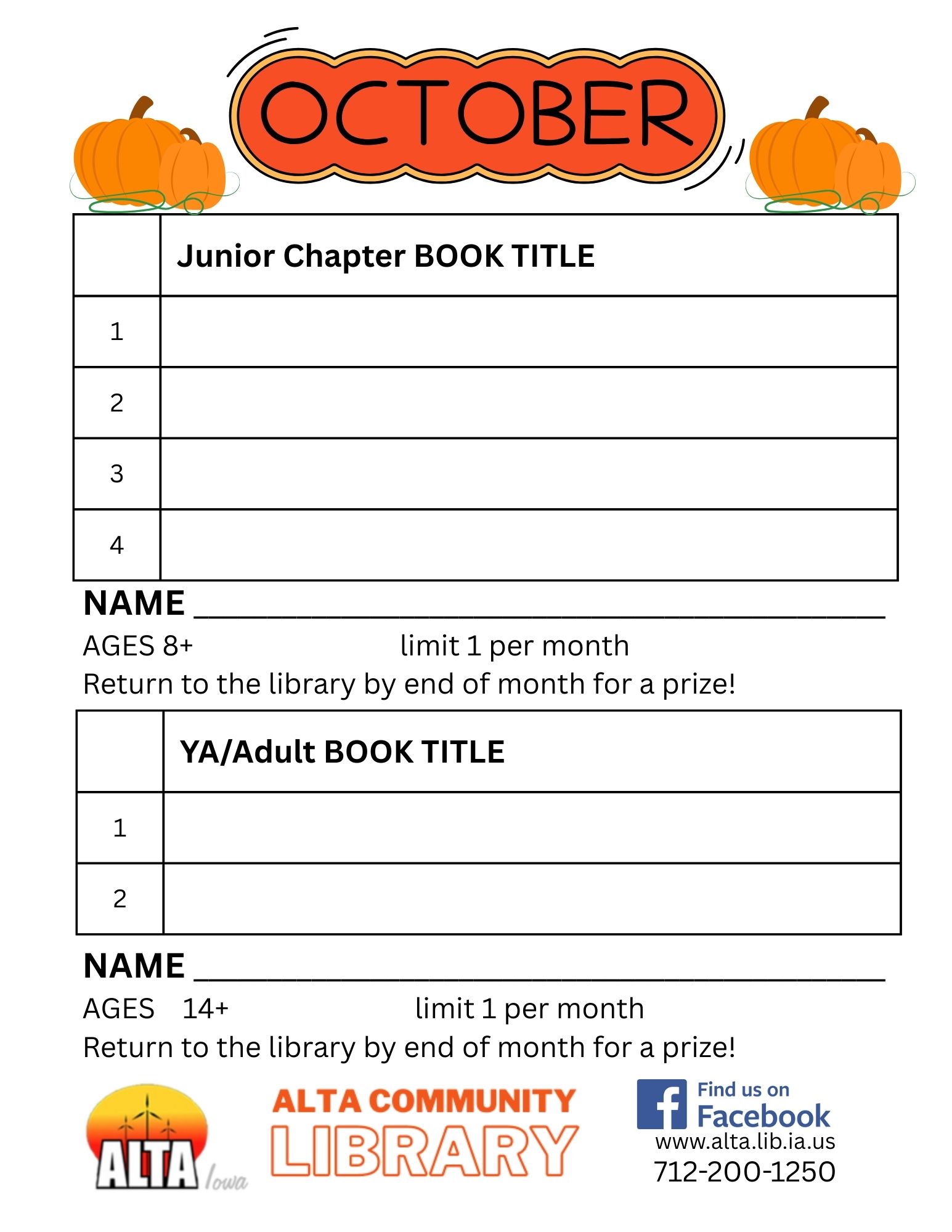 Monthly Reading Challenge September reading log for 11 and under September reading log 12+ October reading log younger October reading log ages 8 thru adult